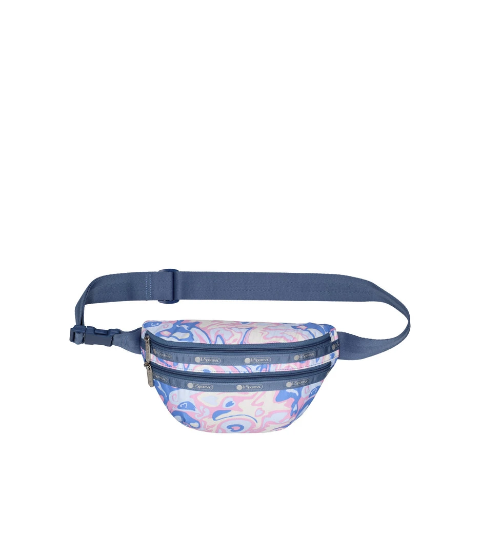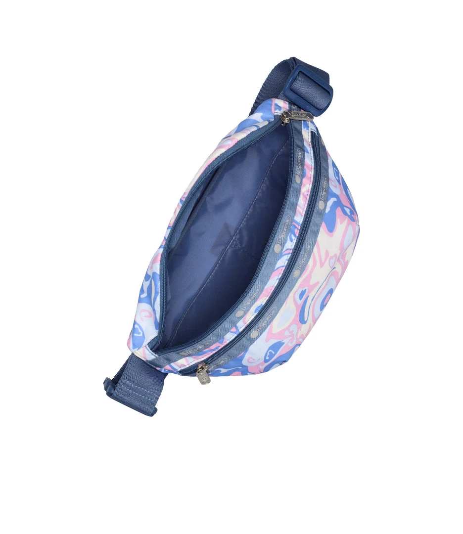 Zip main closure, Exterior front zip pocket, Two interior back wall open pockets, 1.5in/3.8cm wide adjustable belt strap (Max length: 45.27 in/115 cm, Min length 30.7 in/78 cm)