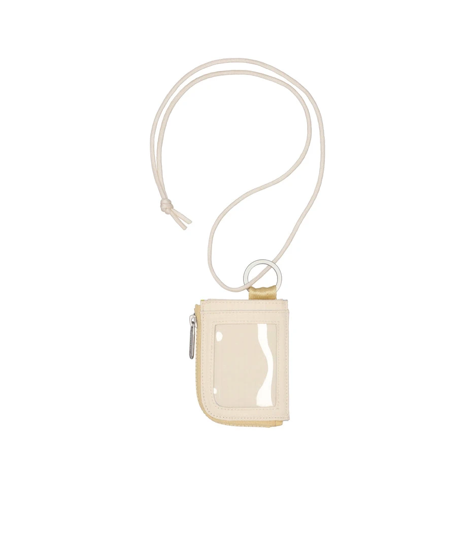 Zip around main closure, Metal key ring with lanyard cord (Drop: 19.96 inch/50cm), Exterior front open pocket, Exterior back clear ID window pocket, Interior back wall features two card pockets