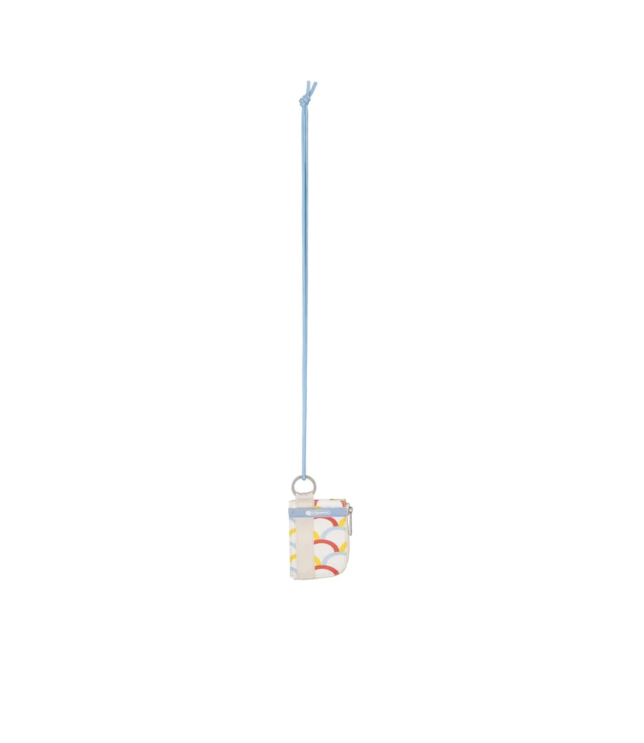 Zip around main closure, Metal key ring with lanyard cord (Drop: 19.96 inch/50cm), Exterior front open pocket, Exterior back clear ID window pocket, Interior back wall features two card pockets