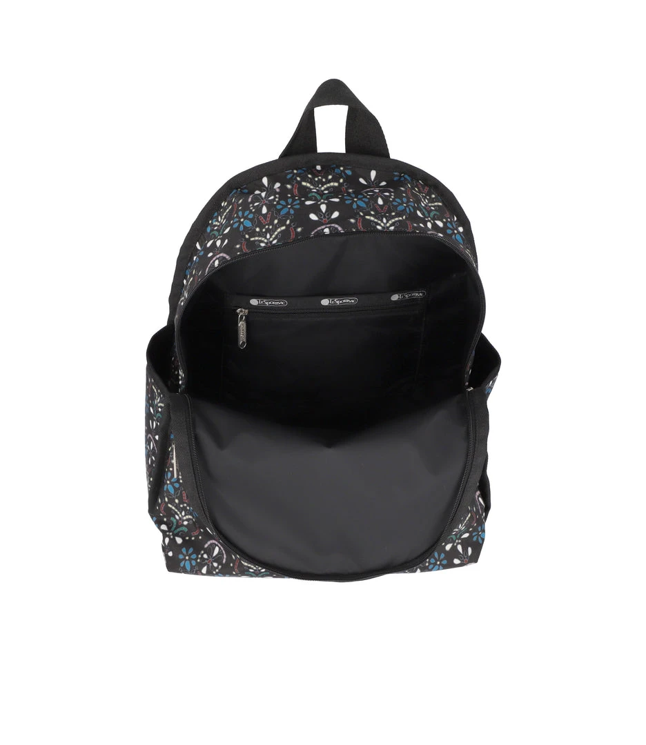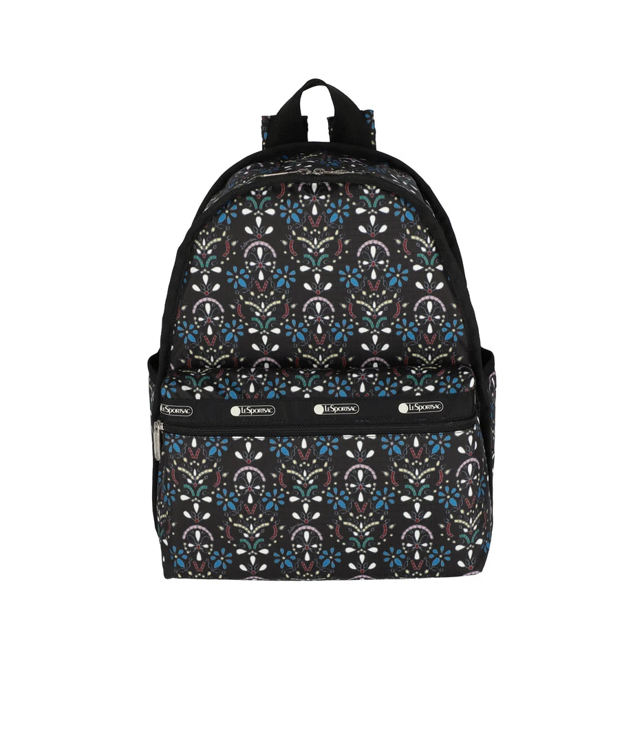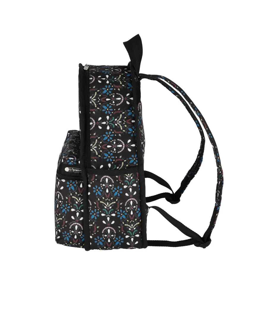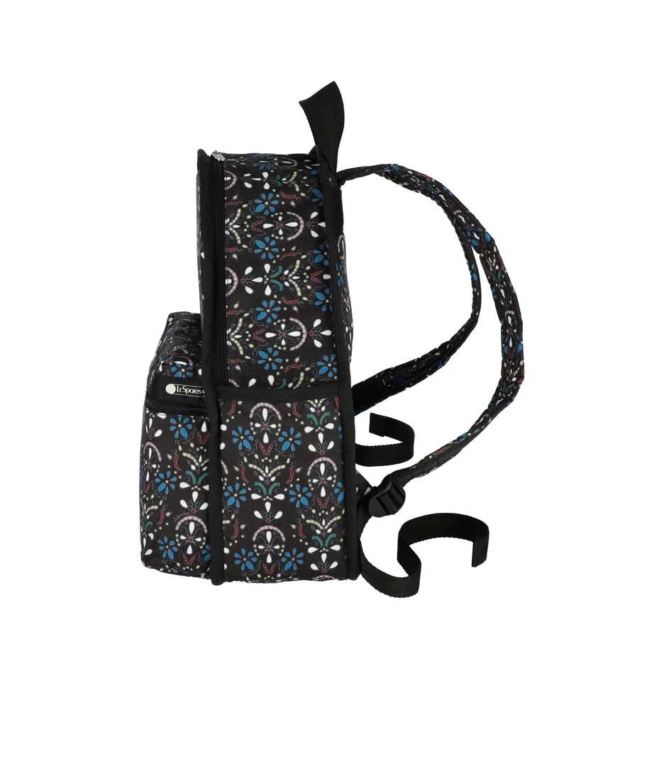 Zip main closure, Exterior front pocket with zip closure, Two exterior side open top pockets, Top loop, Lightly padded back and bottom, Lightly padded adjustable shoulder straps, Interior back wall signature zip/open pocket15 x 12.5 x 7.5 in, 38.1 x 31.75 x 19.05 cm