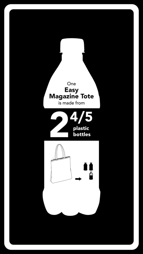 Made using 2.8 recycled plastic bottles, Zipped main closure, 1in (2.5cm) wide top handles (Length: 24.6 in/62.5 cm), Interior back wall combination zip/open pocket