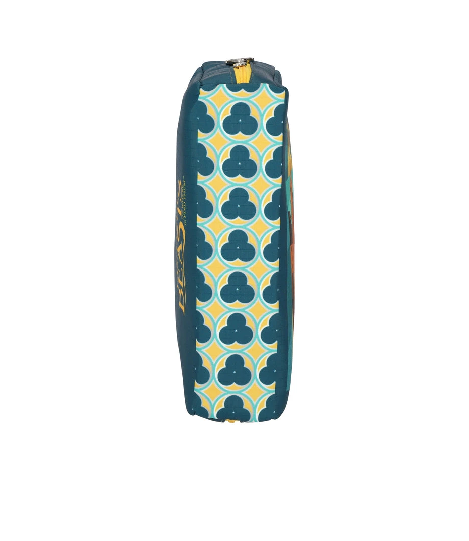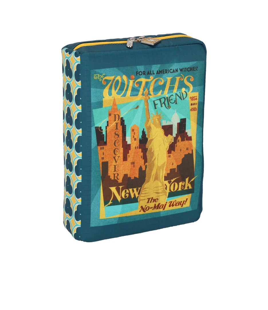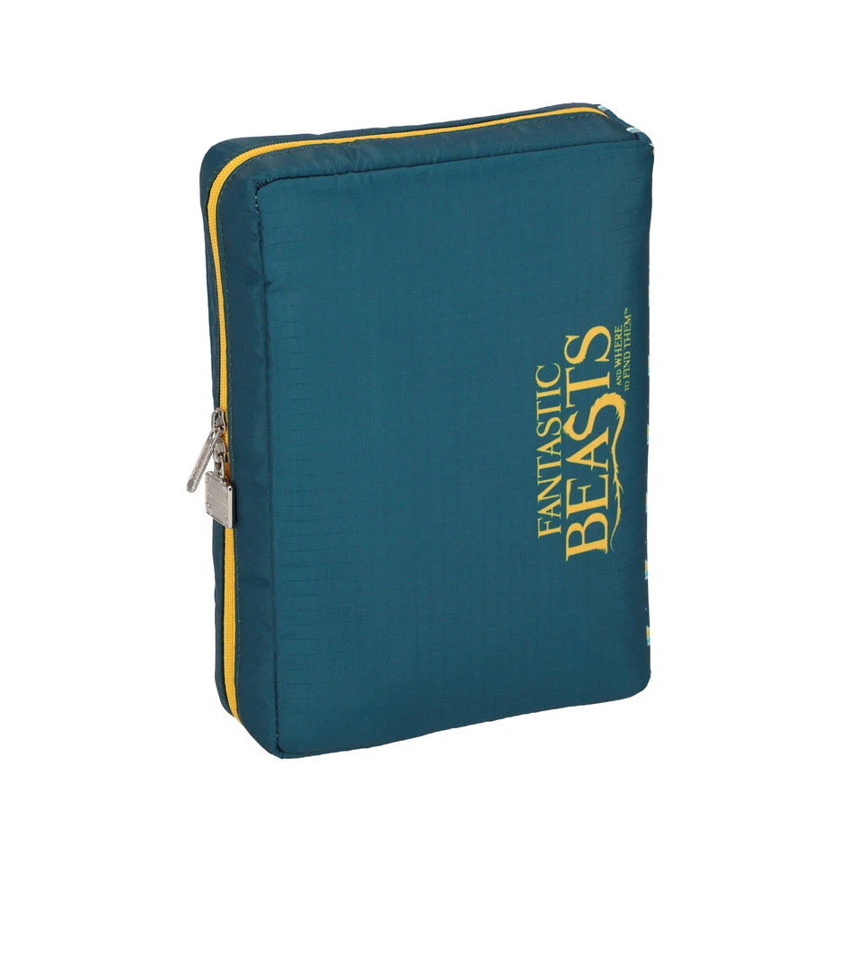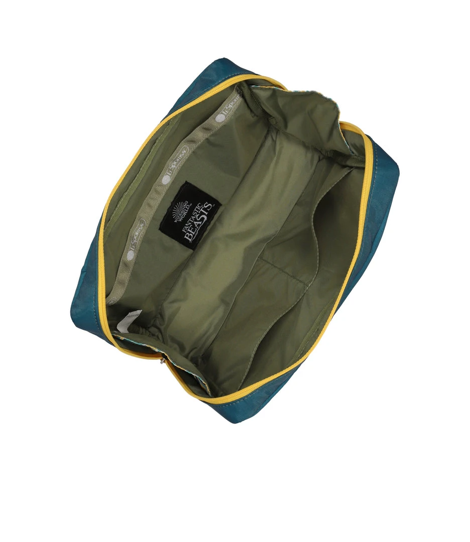 Zip main closure with dual zipper pulls, Interior front wall open pocket, Two interior back wall open pockets