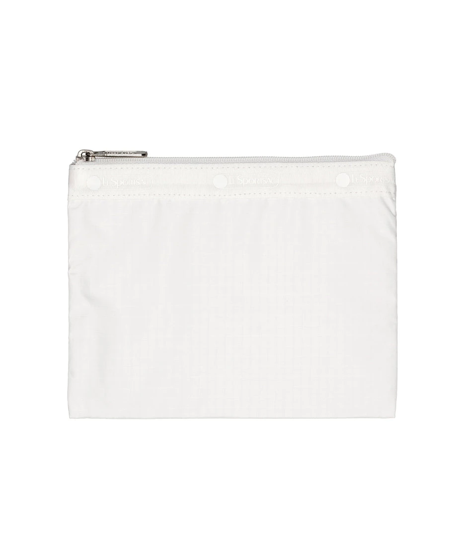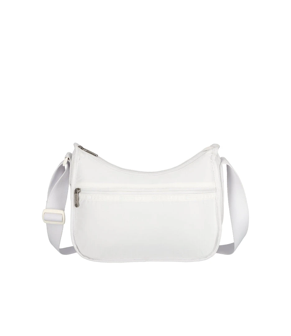 Zipped main closure, Exterior front pocket with zipped closure, Exterior back pocket with zipped closure, Interior back wall hanging zipper pocket, Adjustable shoulder strap (Max. 50in / 127cm), Includes matching pouch with zipped closure