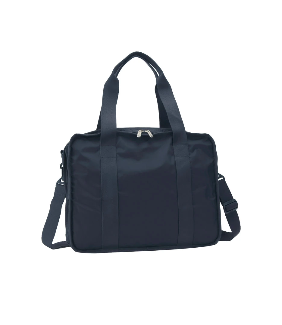 Two interior compartments with zip closure, Exterior front zipper pocket, 1.5in/3.8cm wide top handles (Drop 9.5in/24cm, Length: 24.5in/62cm), 1.5in/3.8cm wide adjustable/detachable shoulder strap (Max length: 50in/127cm, Min length: 26.4in/67cm), Interior front compartment: Two front wall open pockets, Back wall zip/open combination pocket, Interior back compartment: Back wall padded 13in laptop pocket, Includes matching pouch with zip closure (6.3H x 9Win, 16H x 23Wcm)