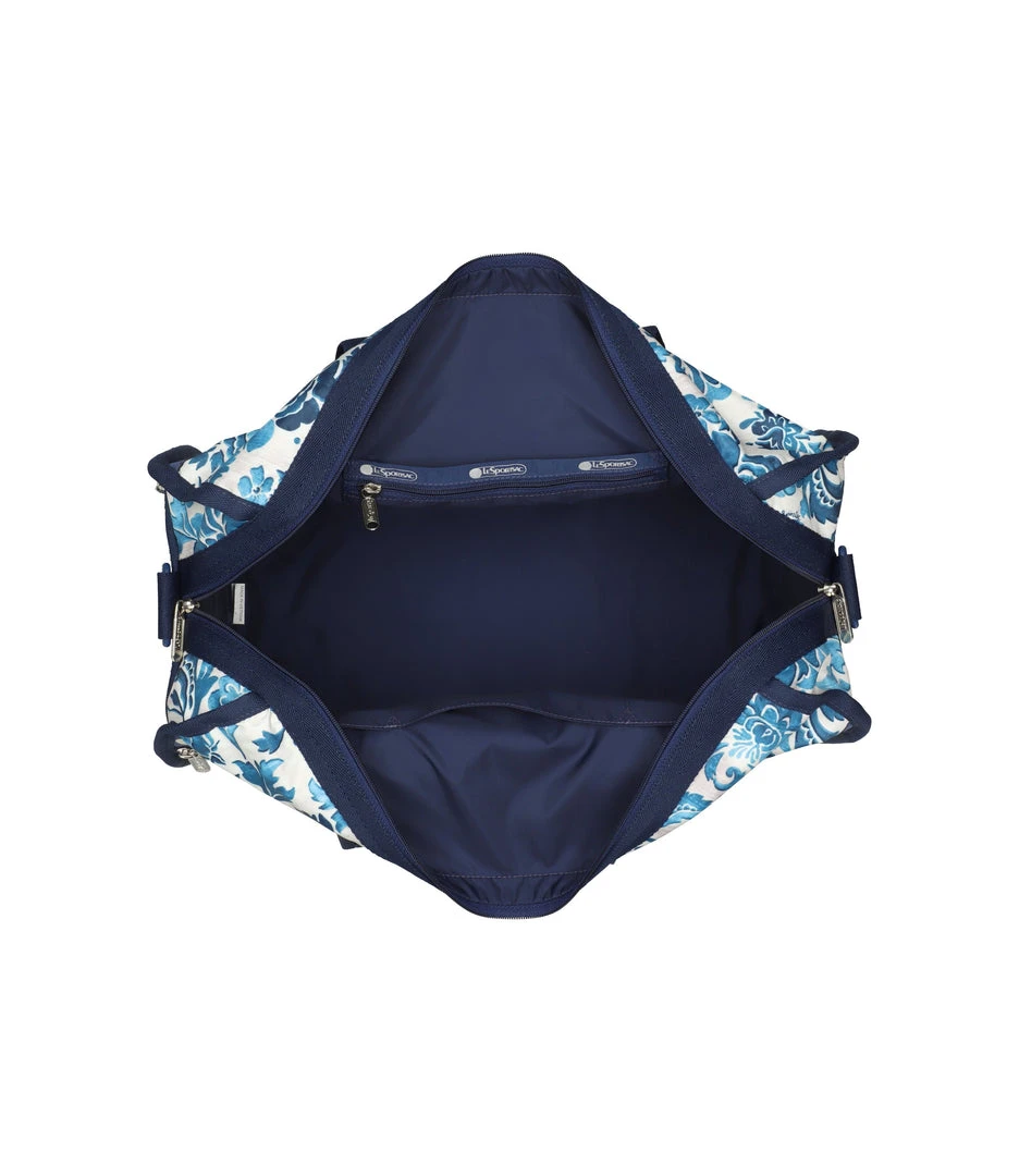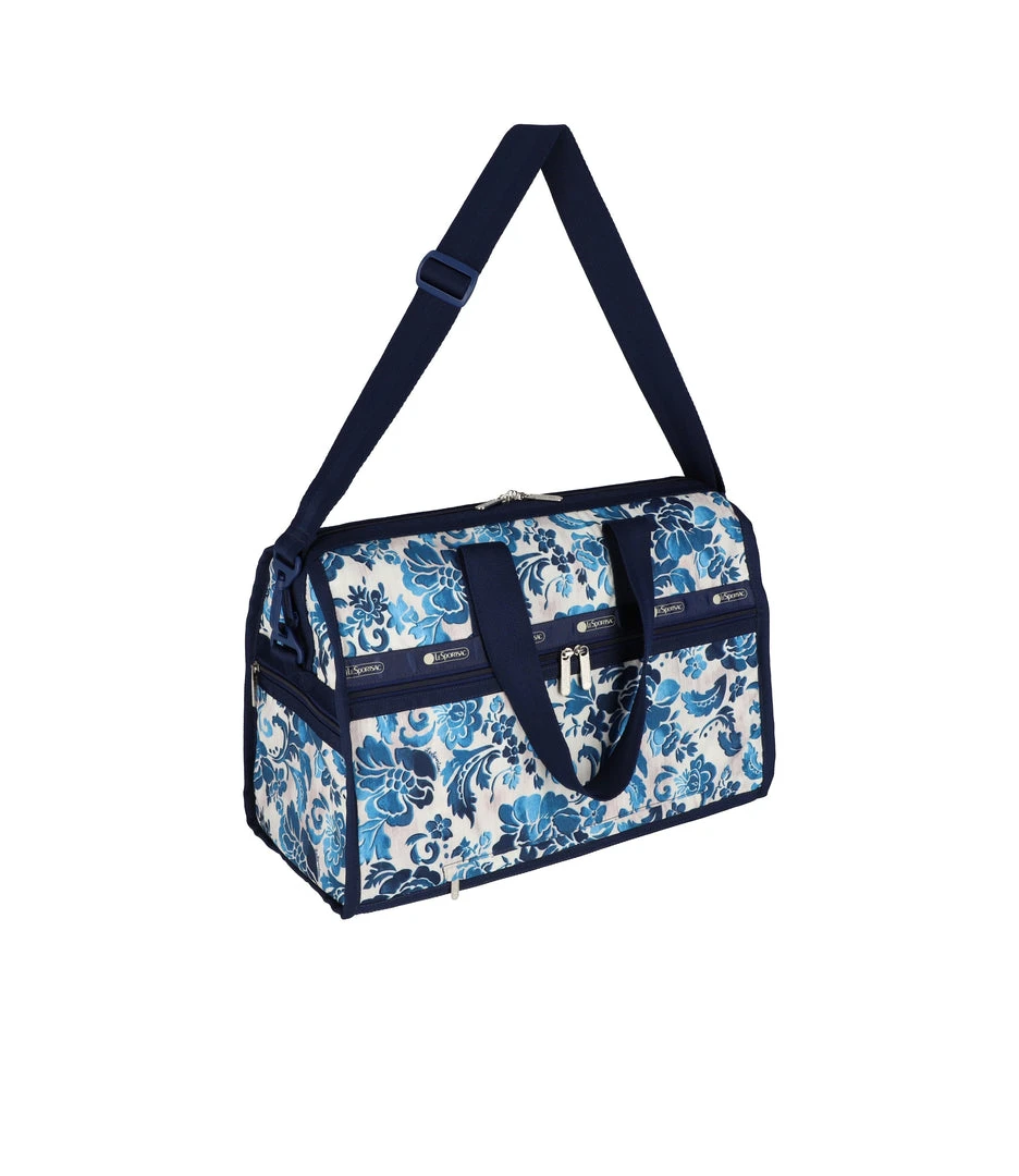 Zip main closure with dual zipper pulls, 7.5in (19.05cm) Top handle drop, 1.5in (3.81cm) Wide adjustable/detachable crossbody strap (Max. 50in/127cm), Exterior front panel zipper pocket, Exterior back panel zip closure pocket with dual zipper pulls and a bottom zipper to convert pocket into a sleeve (to slide over rolling luggage handles), Two exterior side pockets with zip closures, Three interior front wall open pockets, Interior back wall combination zip/open pocket