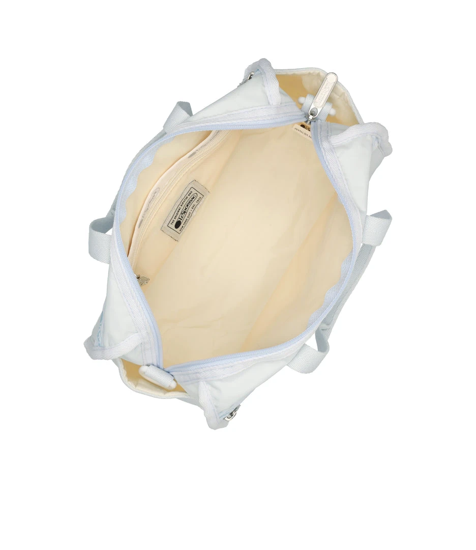 Zip main closure, Exterior front and back pockets with zip closures, Two exterior side open top pockets, 0.75 in (1.9 cm) wide top handles (Drop: 4.7 in/12 cm), 0.75 in (1.9 cm) wide adjustable/detachable shoulder strap (Max length: 50.8 in/129 cm, Min length: 26.6 in/67.5 cm), Interior back wall combination zip/open pocket