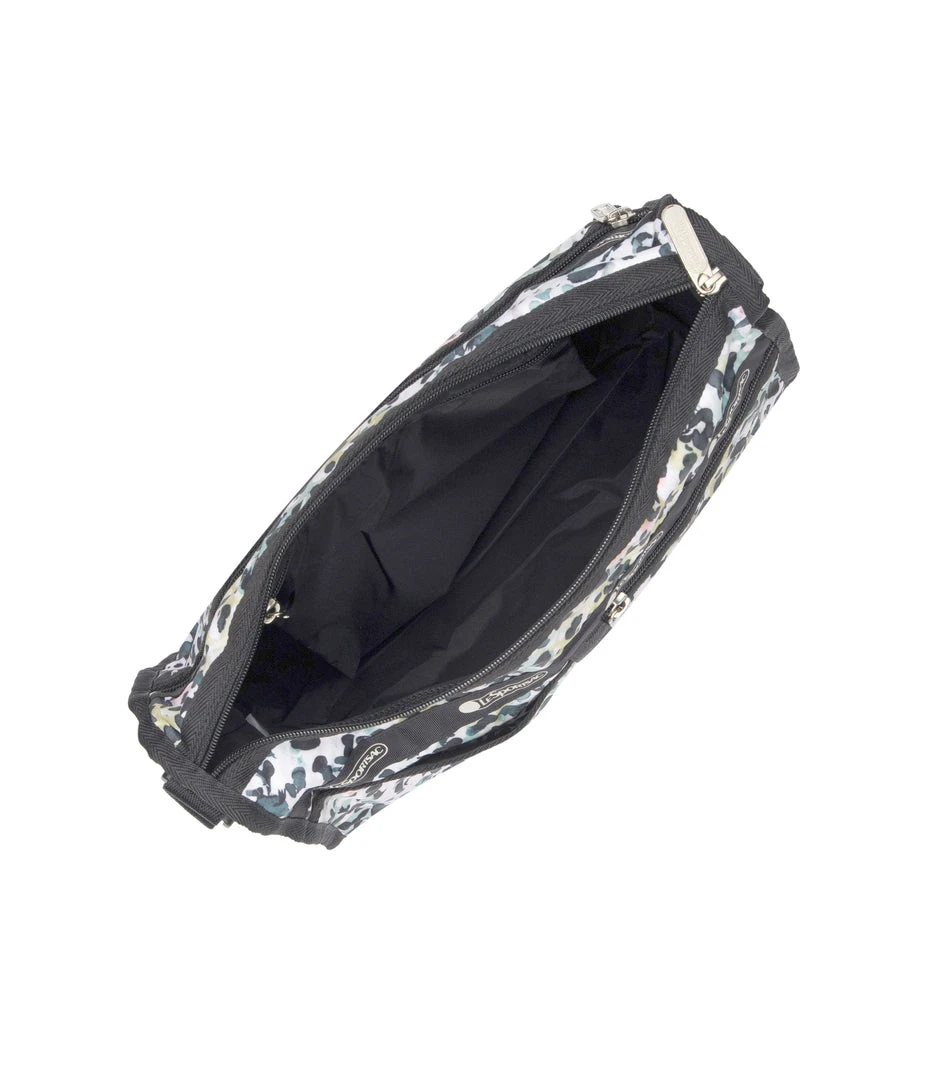 Zipped main closure, Exterior front open pocket, Exterior front pocket with zipped closure, Exterior back pocket with zipped closure, Two exterior open side pockets, Adjustable shoulder strap (Max. 52in/132cm), Interior pocket with zipped closure, Includes matching pouch with zipped closure