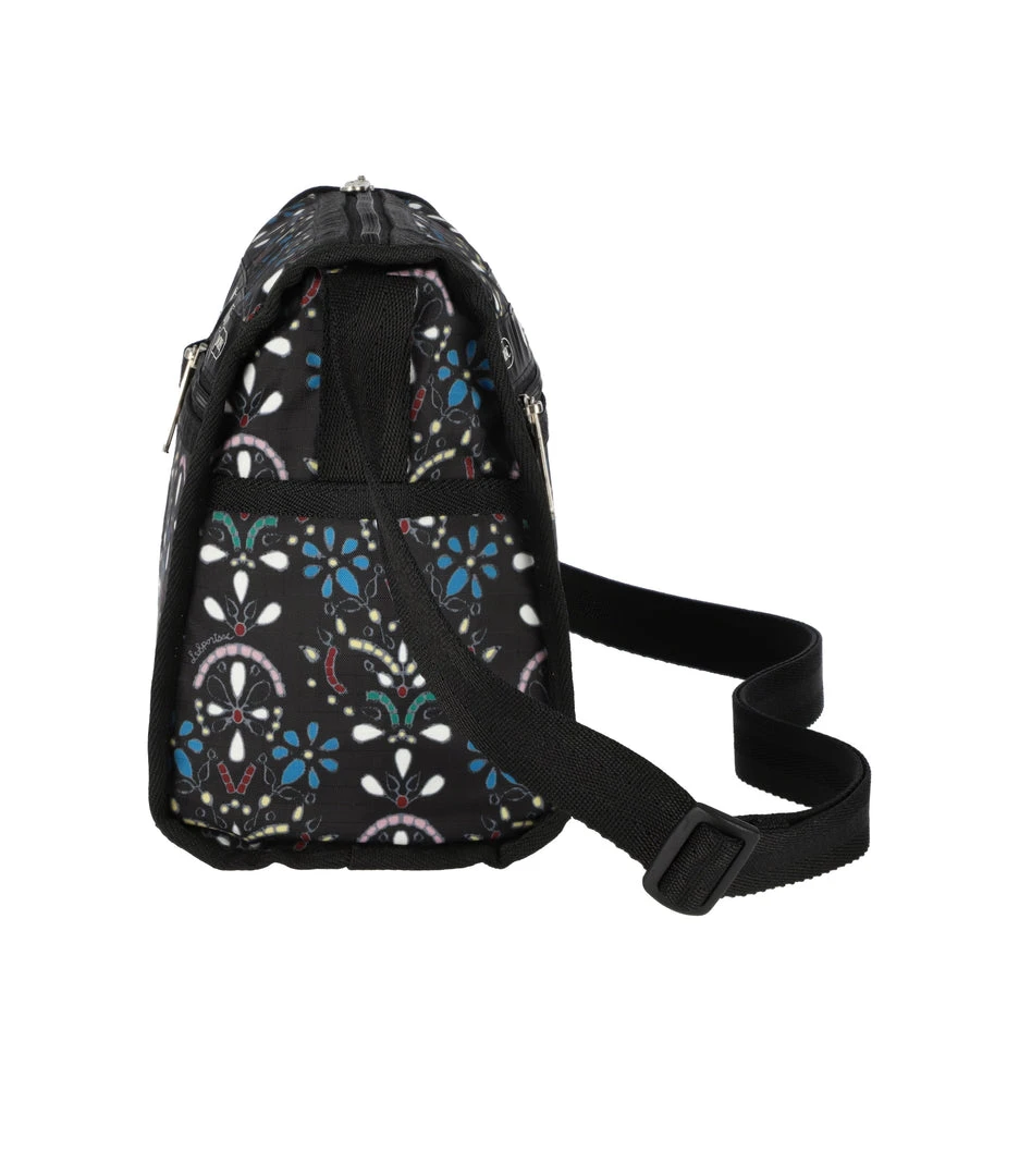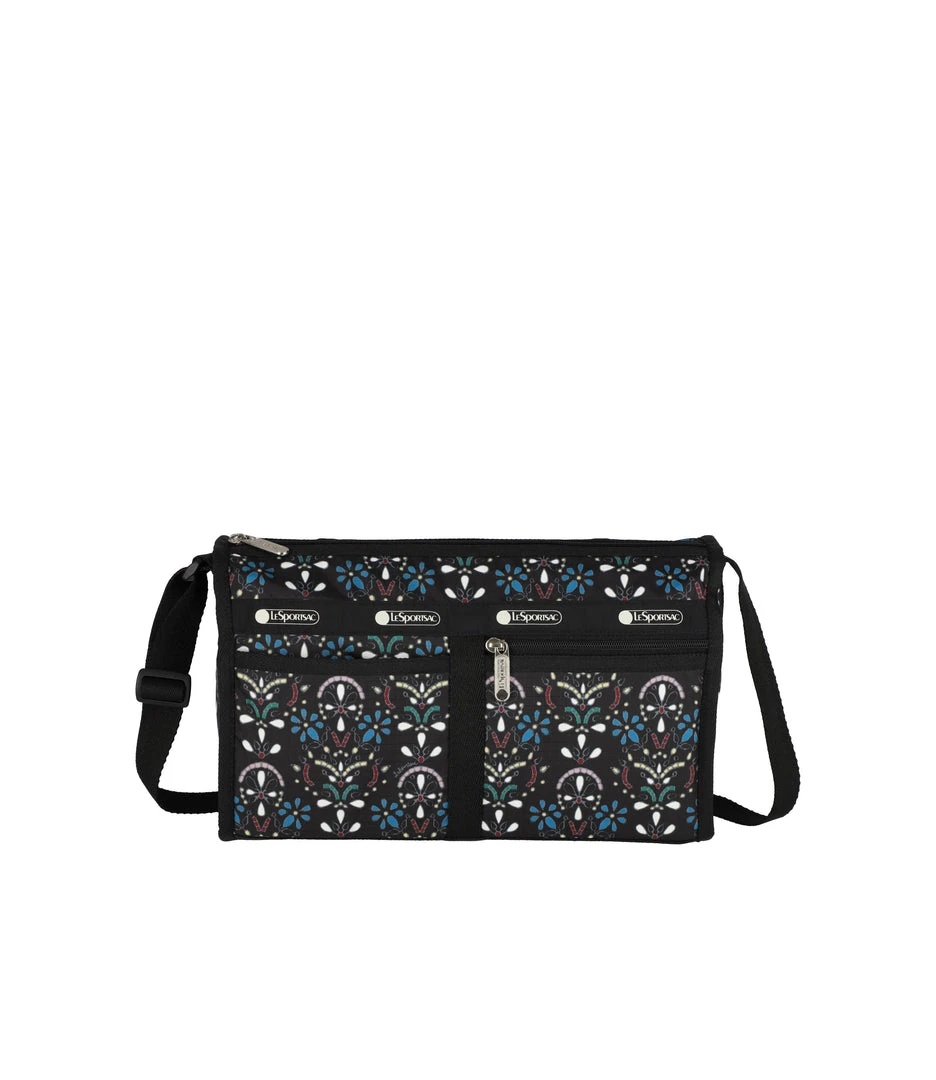 Zipped main closure, Exterior front open pocket, Exterior front pocket with zipped closure, Exterior back pocket with zipped closure, Two exterior open side pockets, Adjustable shoulder strap (Max. 52in/132cm), Interior pocket with zipped closure, Includes matching pouch with zipped closure7.5 x 11.75 x 5 in, 19.05 x 29.85 x 12.7 cm