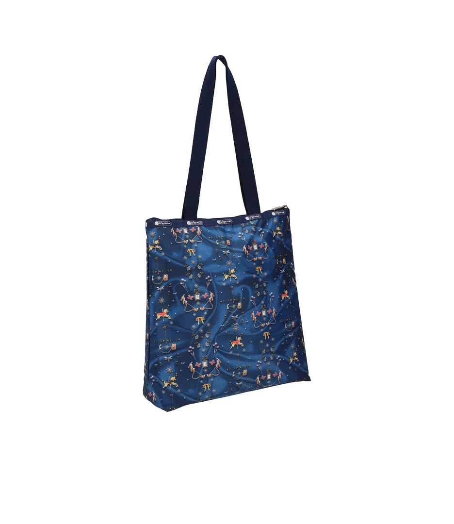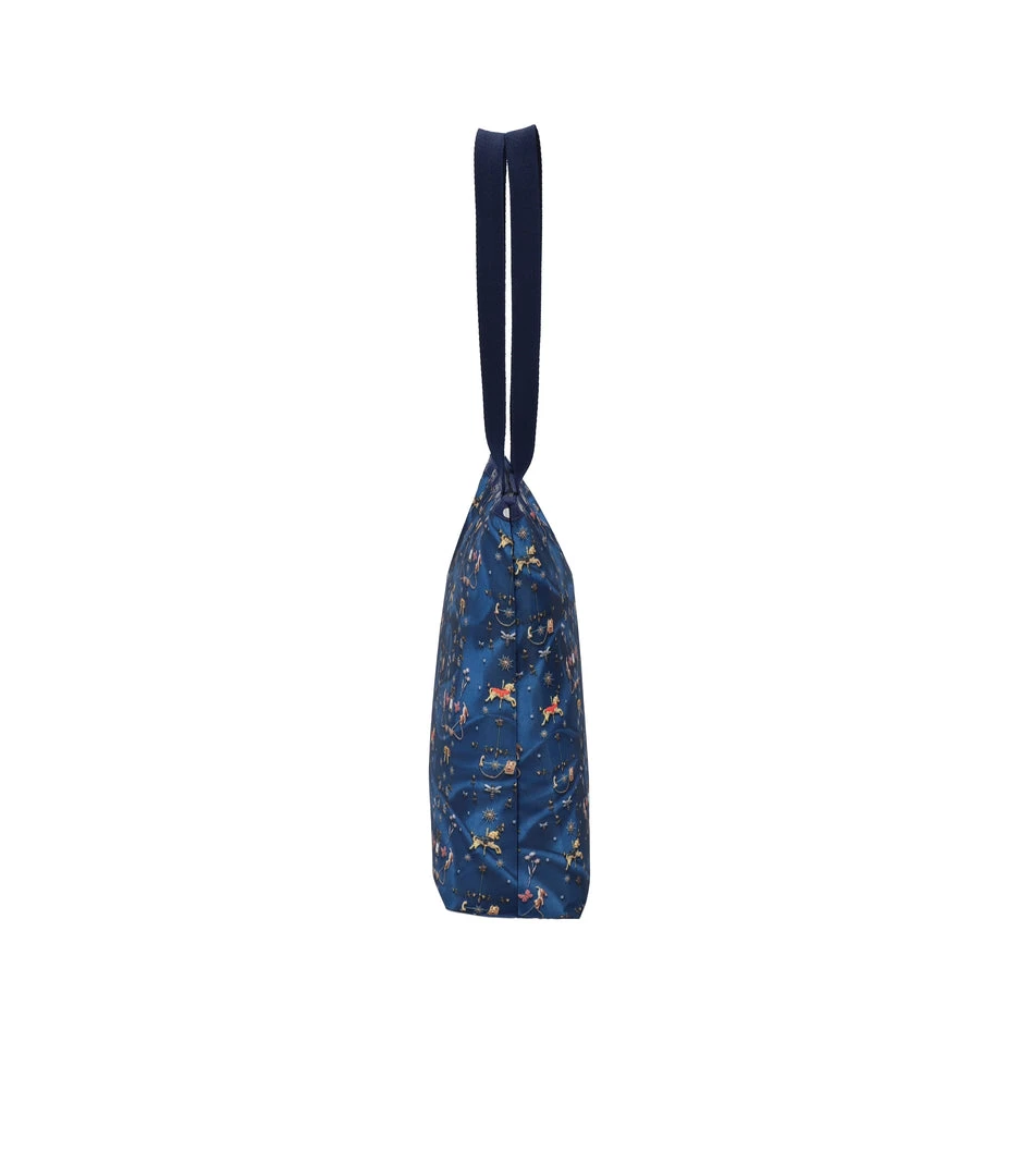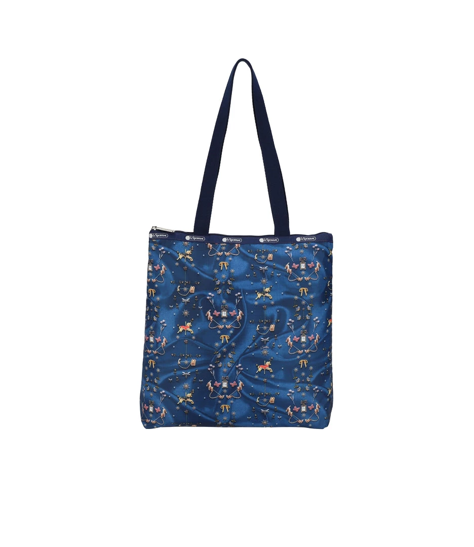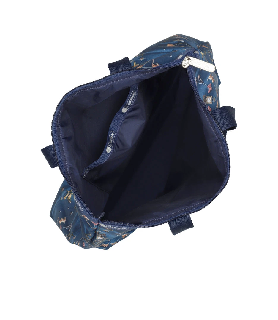 Zipped main closure, 1in (2.5cm) wide top handles (Length: 24.6 in/62.5 cm), Interior back wall combination zip/open pocket