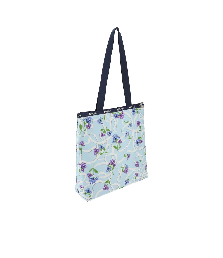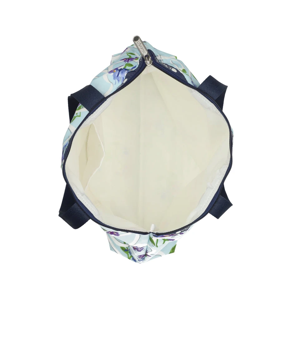Zipped main closure, 1in (2.5cm) wide top handles (Length: 24.6 in/62.5 cm), Interior back wall combination zip/open pocket