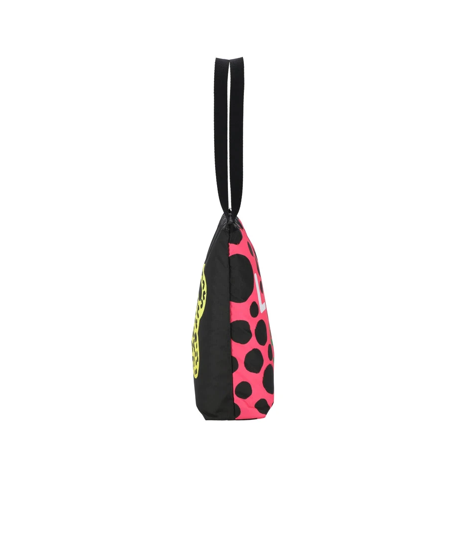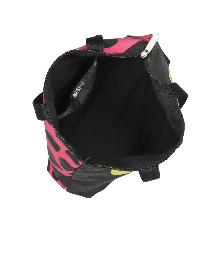 Zipped main closure, 1in (2.5cm) wide top handles (Length: 24.6 in/62.5 cm), Interior back wall combination zip/open pocket