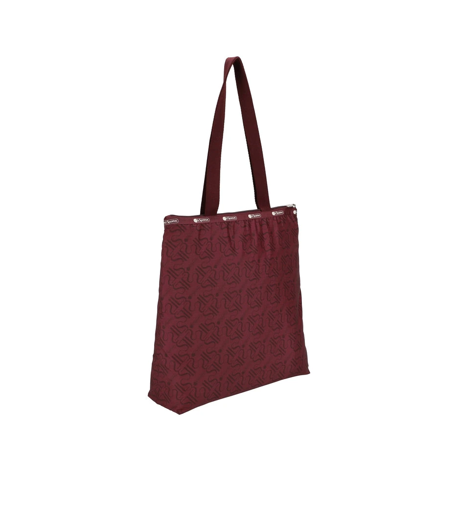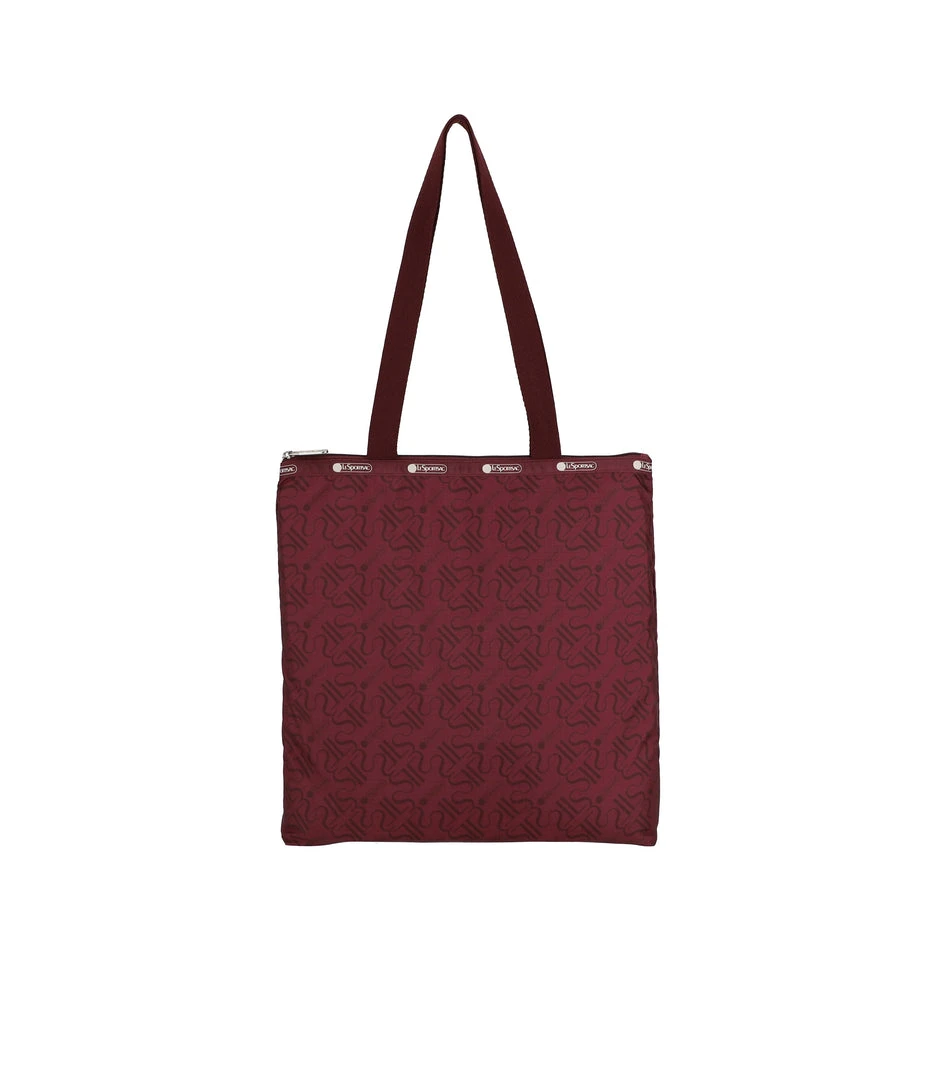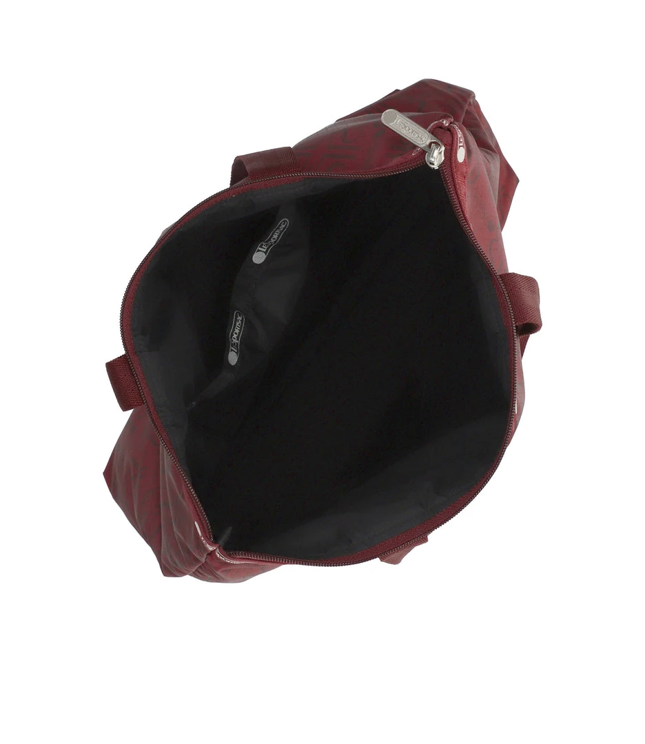 Zipped main closure, 1in (2.5cm) wide top handles (Length: 24.6 in/62.5 cm), Interior back wall combination zip/open pocket