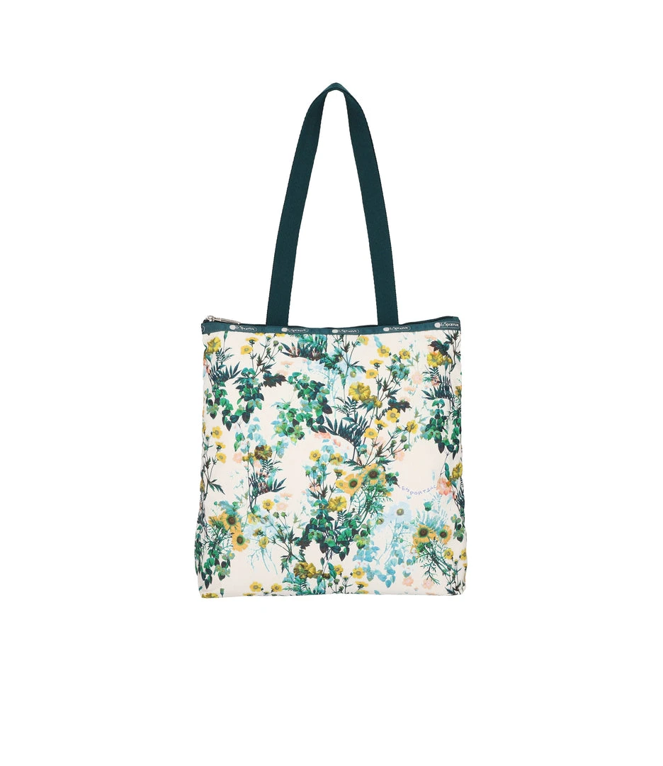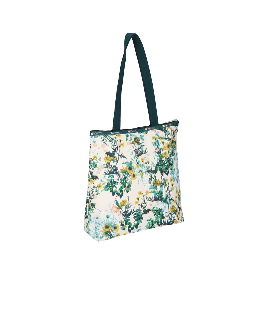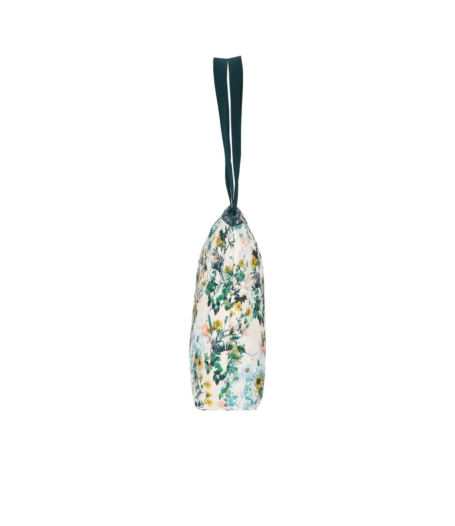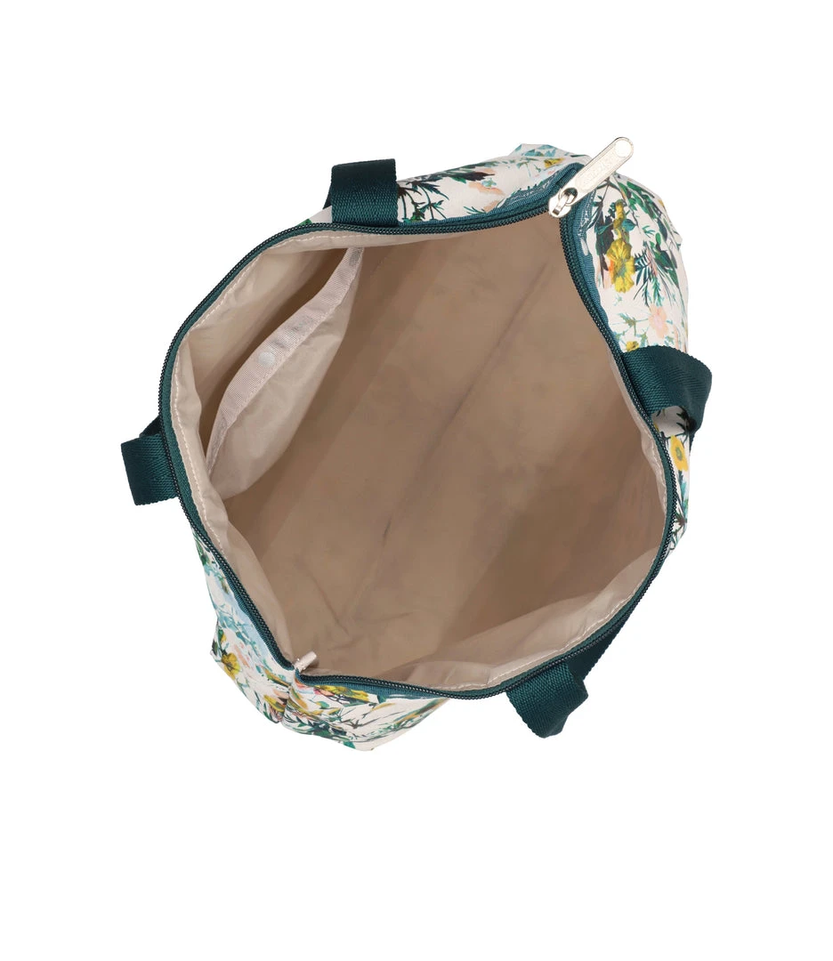 Zipped main closure, 1in (2.5cm) wide top handles (Length: 24.6 in/62.5 cm), Interior back wall combination zip/open pocket