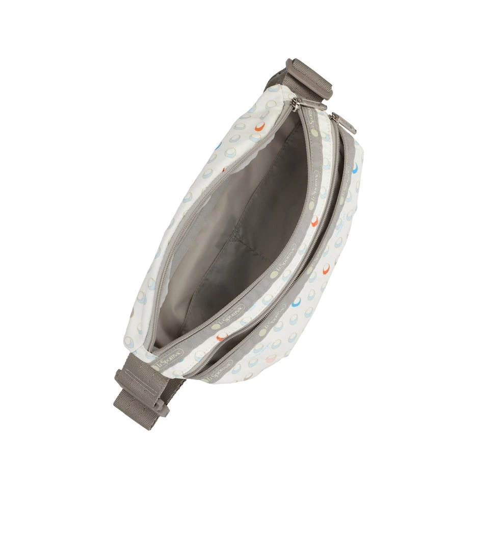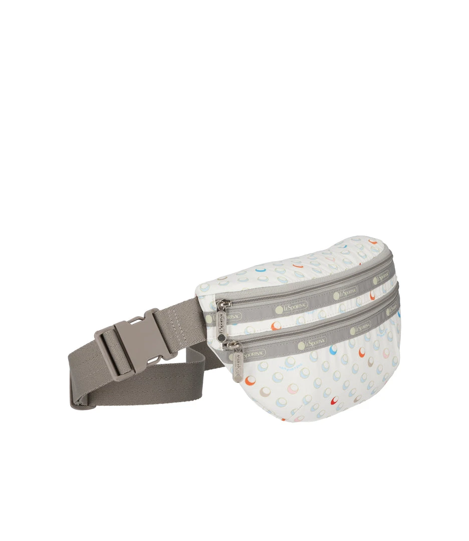 Zip main closure, Exterior front zip pocket, Two interior back wall open pockets, 1.5in/3.8cm wide adjustable belt strap (Max length: 45.27 in/115 cm, Min length 30.7 in/78 cm)