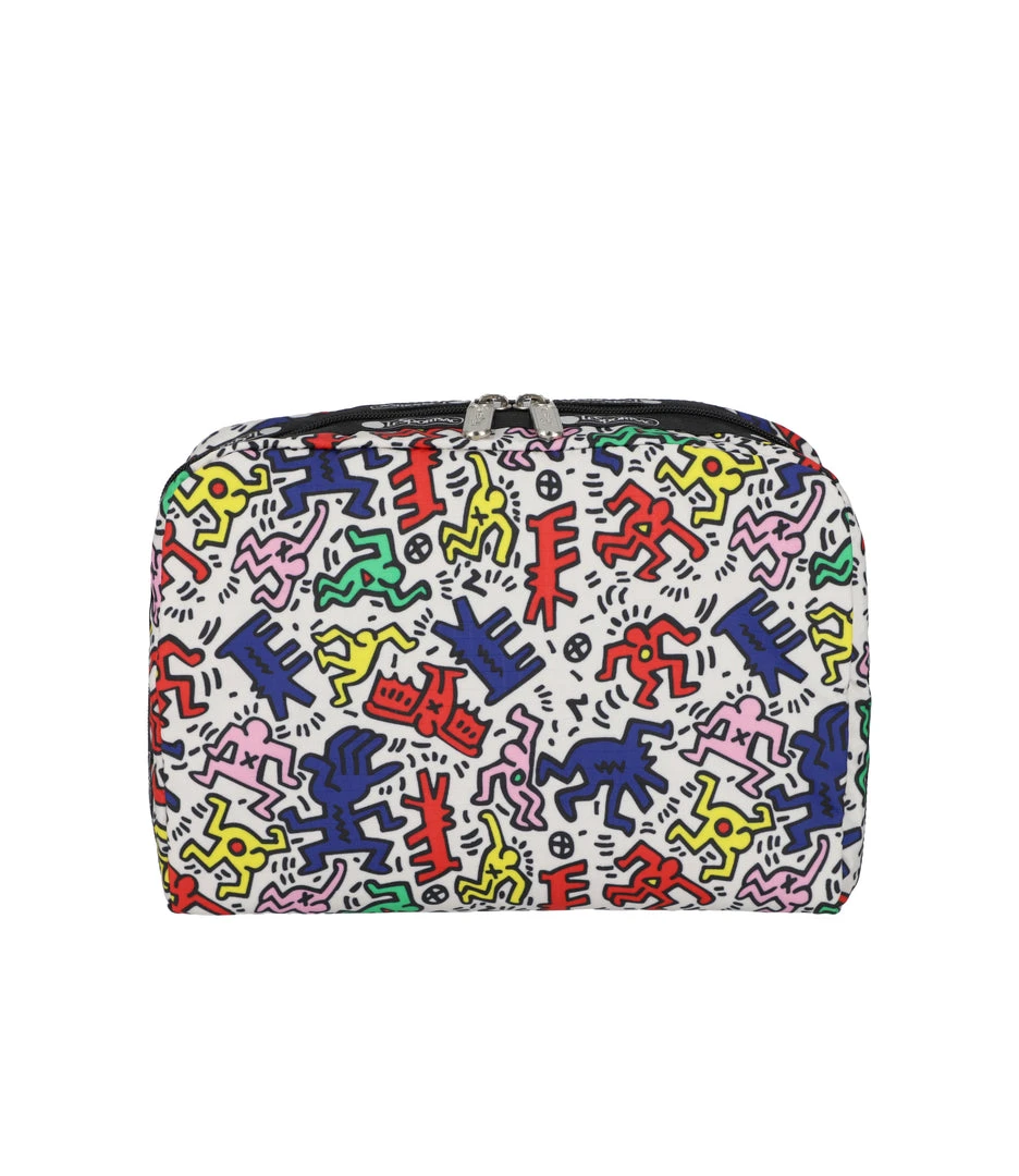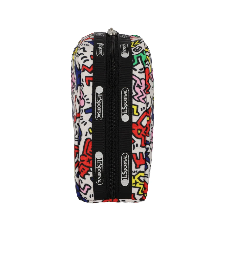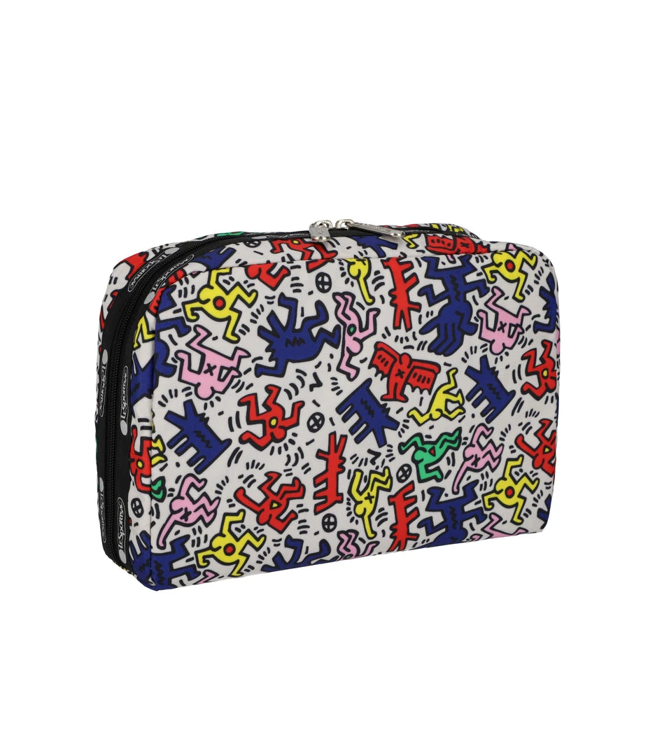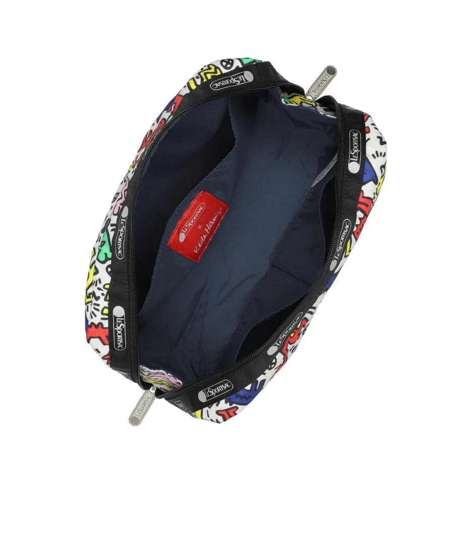 Zip main closure with dual zipper pulls, Interior front wall open pocket, Two interior back wall open pockets