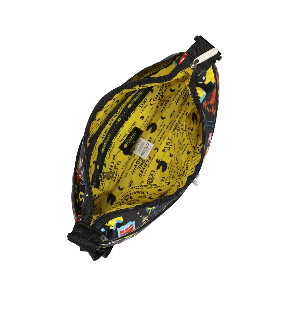 Zip main closure, Exterior front pocket with dual zip closure, Exterior back open pocket with magnetic snap closure, Two interior front wall open pockets, Interior back combination zip/open pocket with key loop on top of large open pocket, 1.5 in/3.8cm wide adjustable shoulder strap (Max length: 26.2 in/66.5 cm, Min length: 16.7 in/ 42.5 cm)