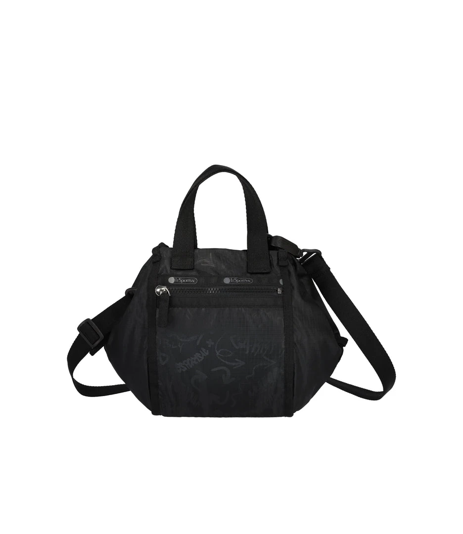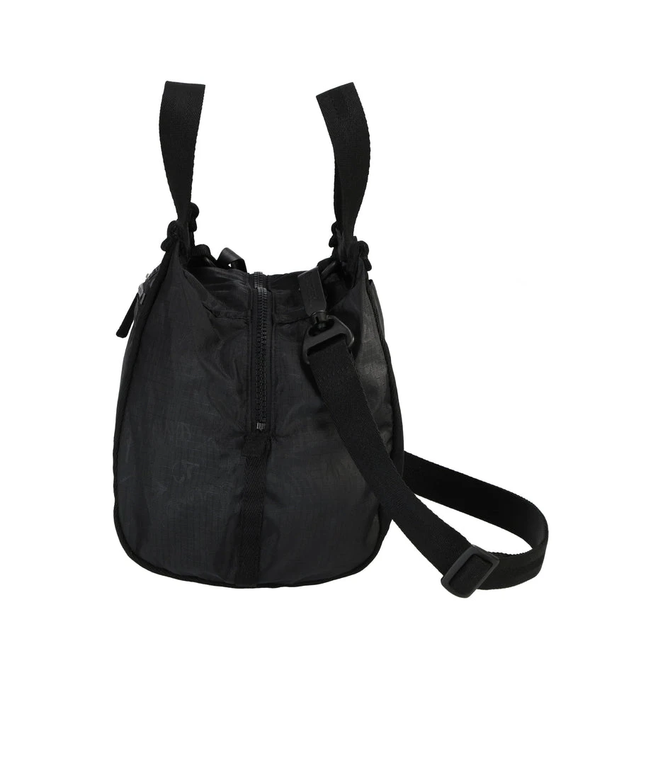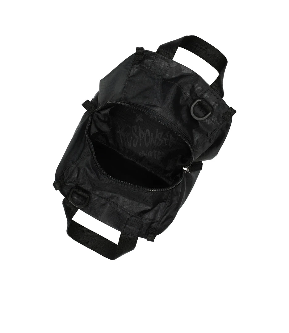 Made using 5 recycled plastic bottles, Zipped main closure, Exterior front zip pocket, Exterior back open pocket with magnetic snap closure, 1in/2.5cm wide top handles (Drop: 4in/10.2 cm, Length : 9.4in/24cm), 1in/2.5cm wide adjustable/detachable shoulder strap (Max length: 50 in/127 cm, Min length: 26.3 in/67 cm)