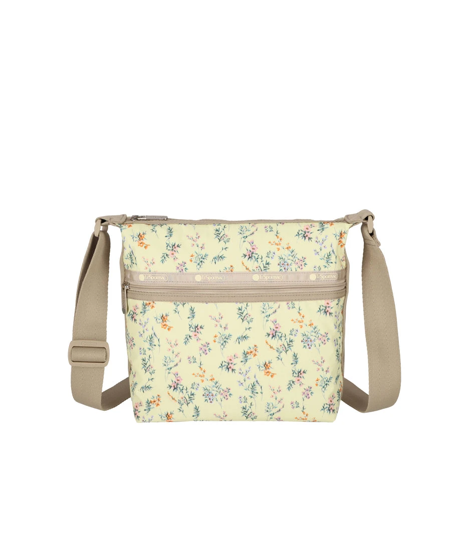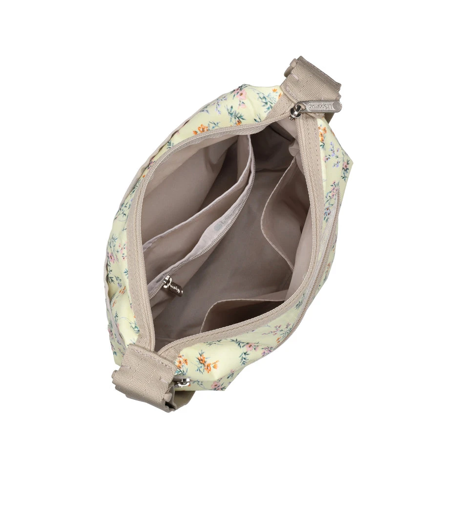 Zip main closure, Exterior front pocket with zip closure, Exterior back open pocket with magnetic snap closure, Two Interior front wall open pockets, Interior back wall features a combination zip/open pocket and a larger open pocket, 1.5 in/3.8cm wide adjustable shoulder strap (Max length: 53 in/134.5 cm, Min length: 30.3 in/ 77 cm)