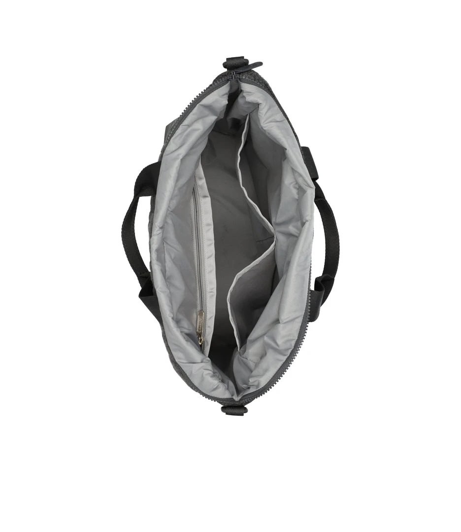 Zipped main closure, Exterior back zip pocket, Two interior front wall open pockets, Large interior back wall zip pocket, 1.5in/3.8cm pinched top handles (Drop: 8 in/20.5cm), 1.5in/3.8cm wide adjustable/detachable shoulder strap (Min length : 26.7in/68 cm, Max length: 50 in/127 cm)