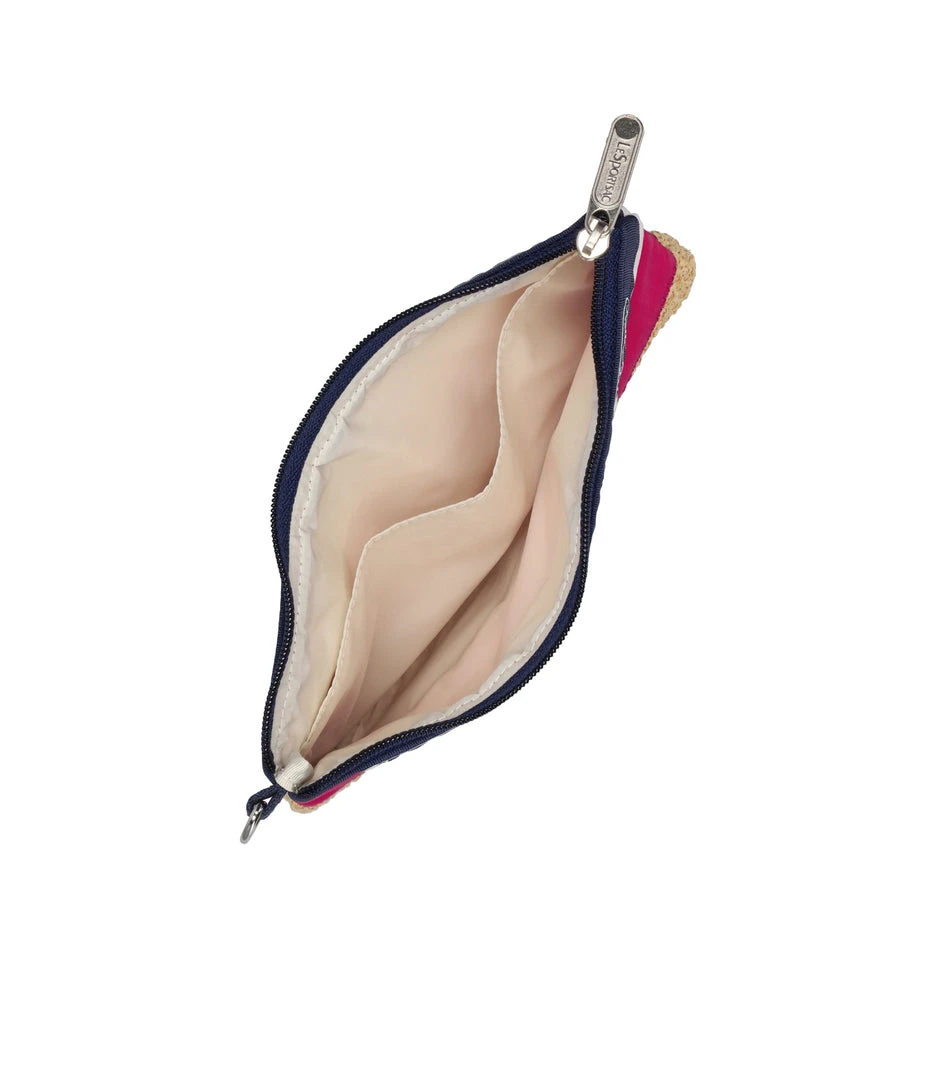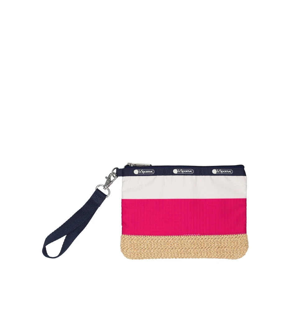 Zip main closure, Interior back wall open pocket, Loop and D ring on exterior left side with a 0.75in/1.9cm wide detachable wristlet strap(Length: 5.8 in/14.8 cm)