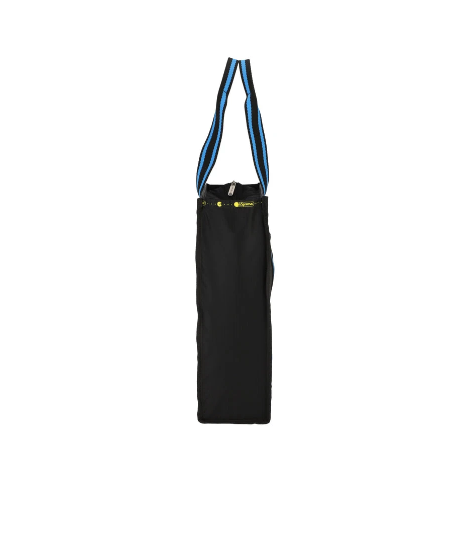 Zip main closure, Exterior back zip pocket, Interior back wall large open pocket, 1.5in/3.8cm wide pinched top handles (Drop: 9in/23cm, Length: 21.3in/54 cm)