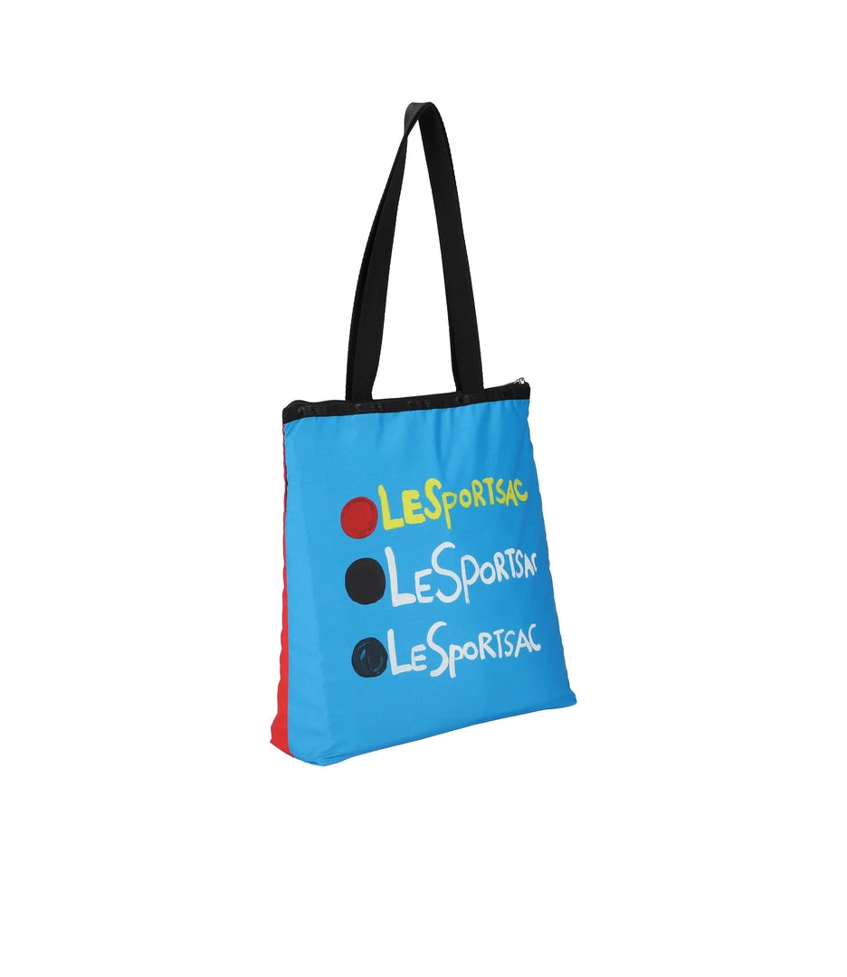 Zipped main closure, 1in (2.5cm) wide top handles (Length: 24.6 in/62.5 cm), Interior back wall combination zip/open pocket