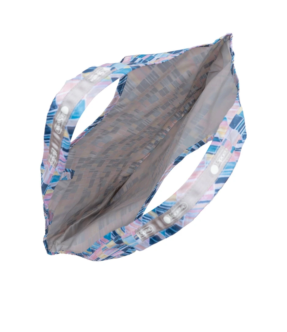 Lightweight tote that folds into a detachable wristlet pouch for easy on-the-go portability!