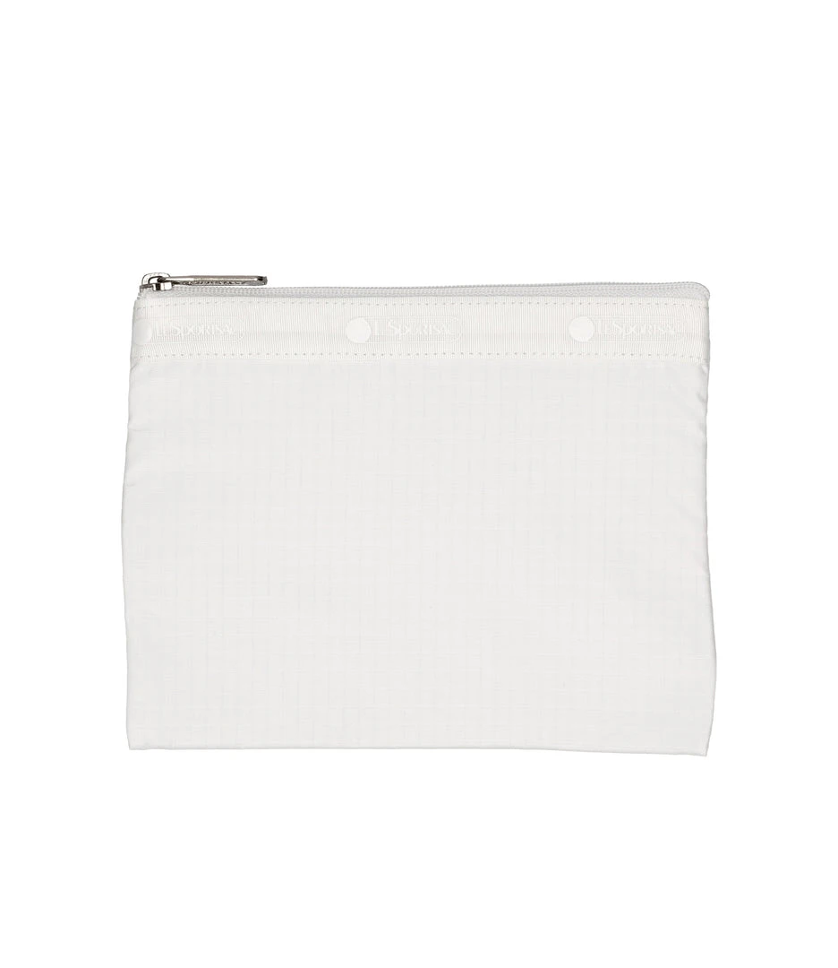 Zipped main closure, Exterior front open pocket, Exterior front pocket with zipped closure, Exterior back pocket with zipped closure, Two exterior open side pockets, Adjustable shoulder strap (Max. 52in/132cm), Interior pocket with zipped closure, Includes matching pouch with zipped closure