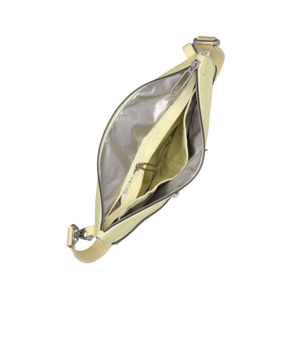 Zip top main closure, Adjustable/detachable crossbody strap (Max. 50in/127cm), Two exterior front pockets with zip closures, Two exterior back panel open pockets, Interior back wall zip closure pocket, Two interior front wall open pockets