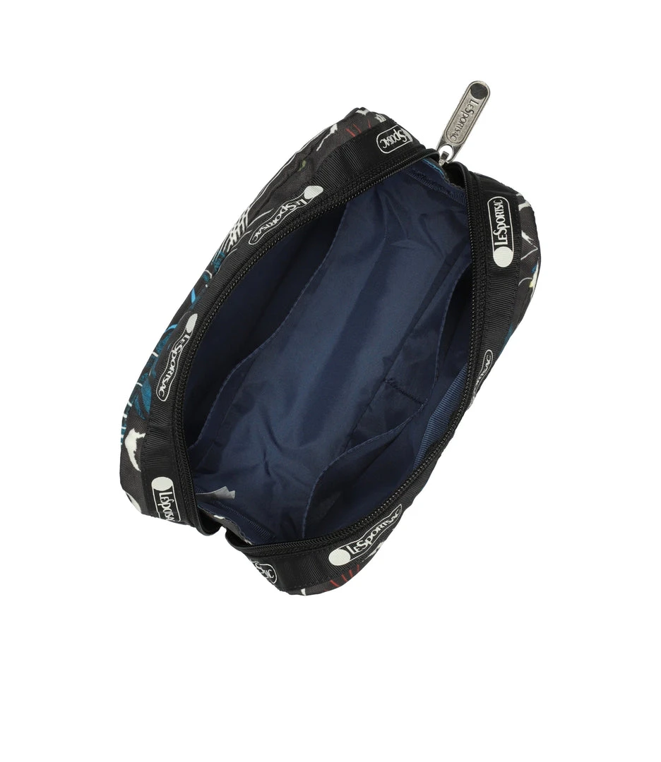 Zipped main closure, Interior back wall open pocket, Two interior front wall open pockets