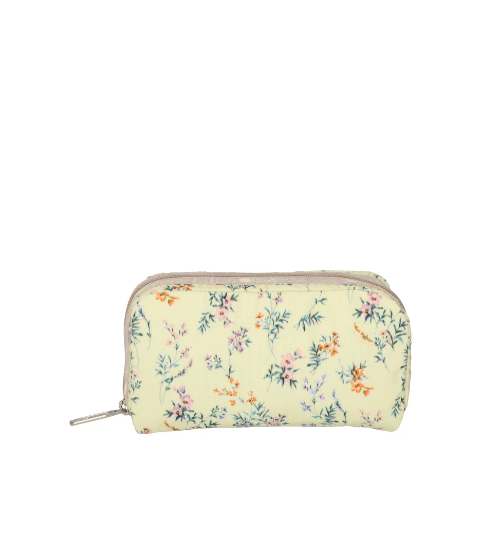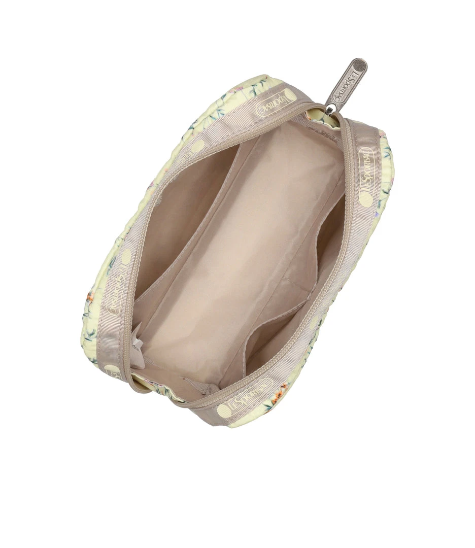 Zipped main closure, Interior back wall open pocket, Two interior front wall open pockets