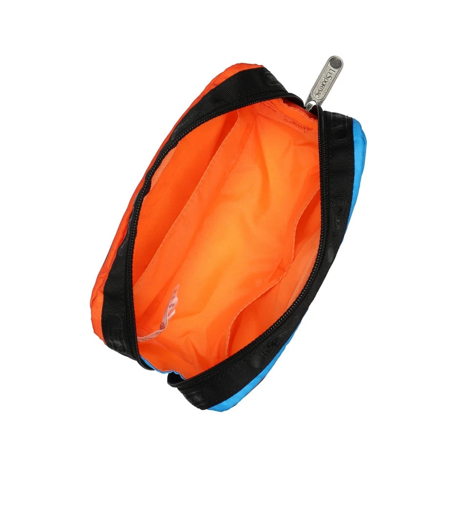 Zipped main closure, Interior back wall open pocket, Two interior front wall open pockets