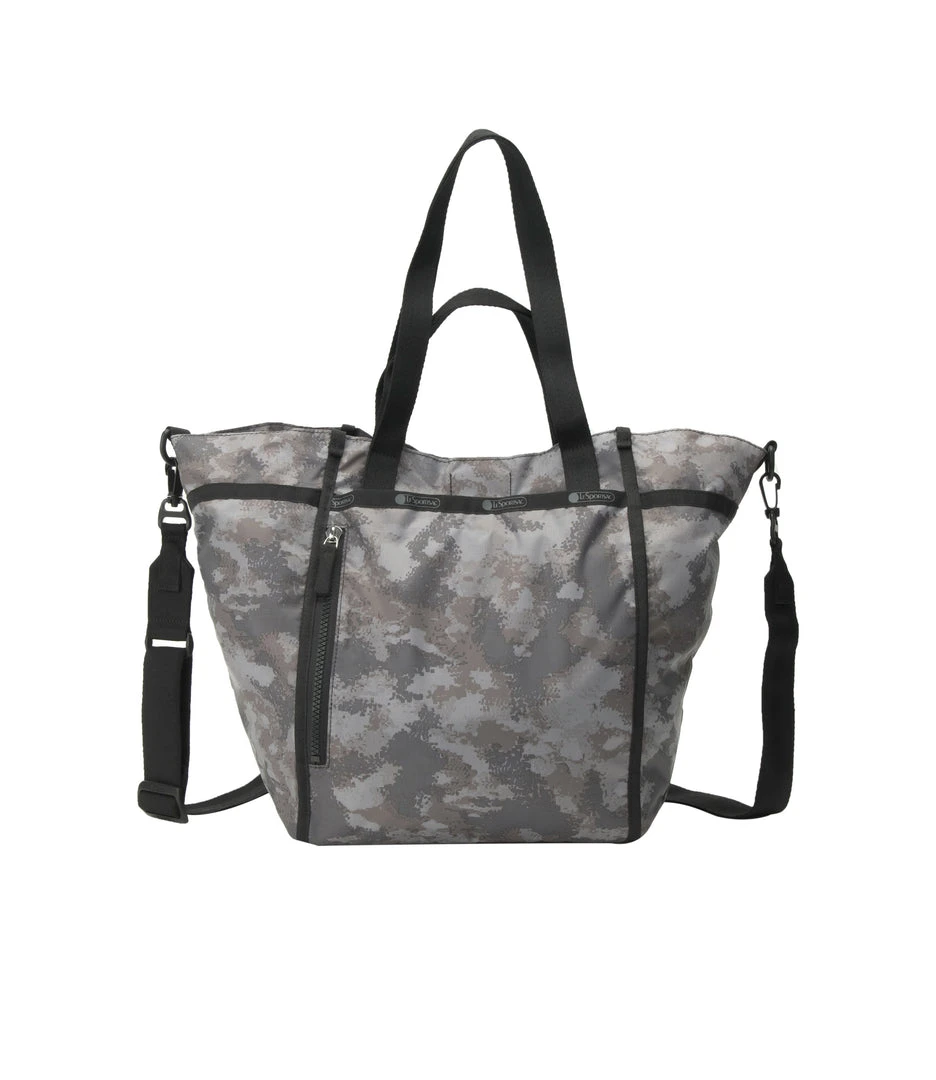 Magnetic snap main closure, Two sets of handles: Short handles with a 4.25in (10.8cm) drop and Long handles with a 9in (22.9cm) drop, Exterior front open pocket with magnet snap, Exterior front sideways zip pocket, Exterior back open pocket with magnetic snap, Interior front wall open pocket, Interior back wall open pocket, 1in/2.5cm wide adjustable/detachable shoulder strap (Max length: 50 in/127 cm, Min length: 28.7 in/73 cm)