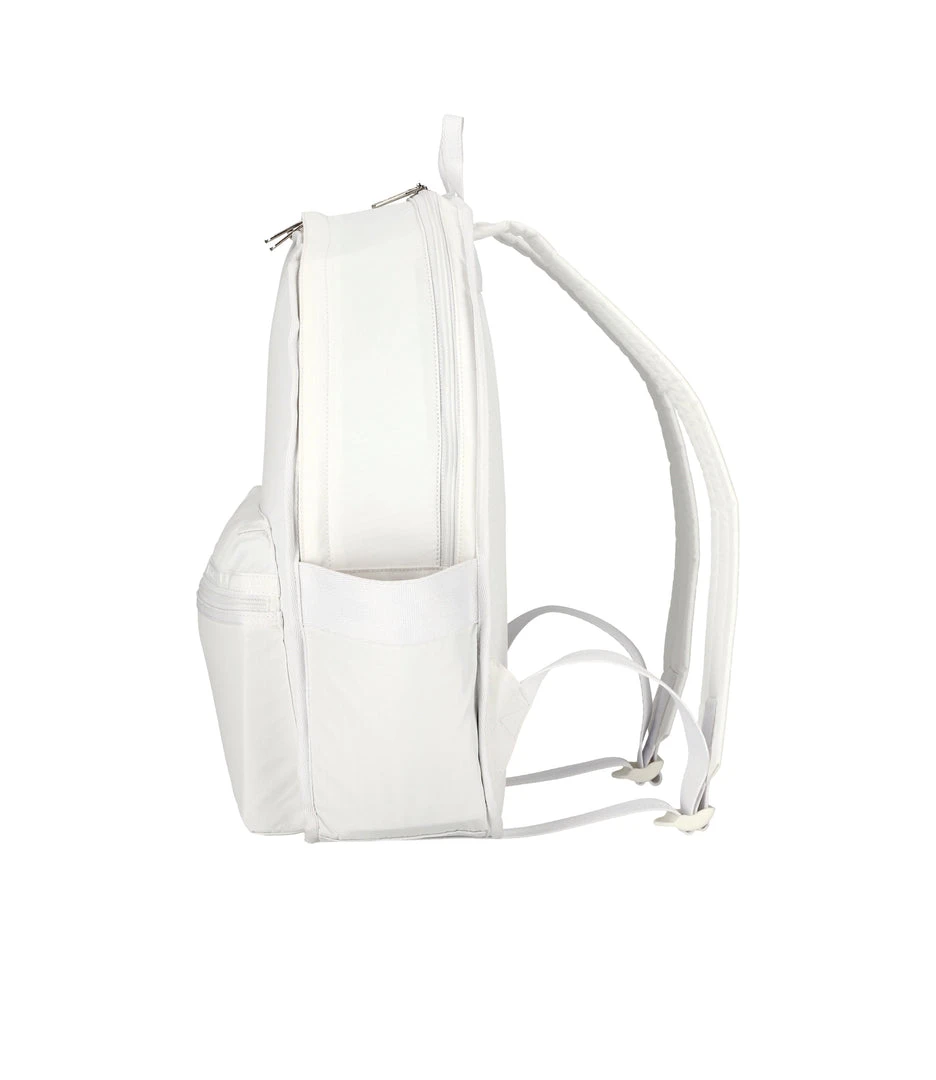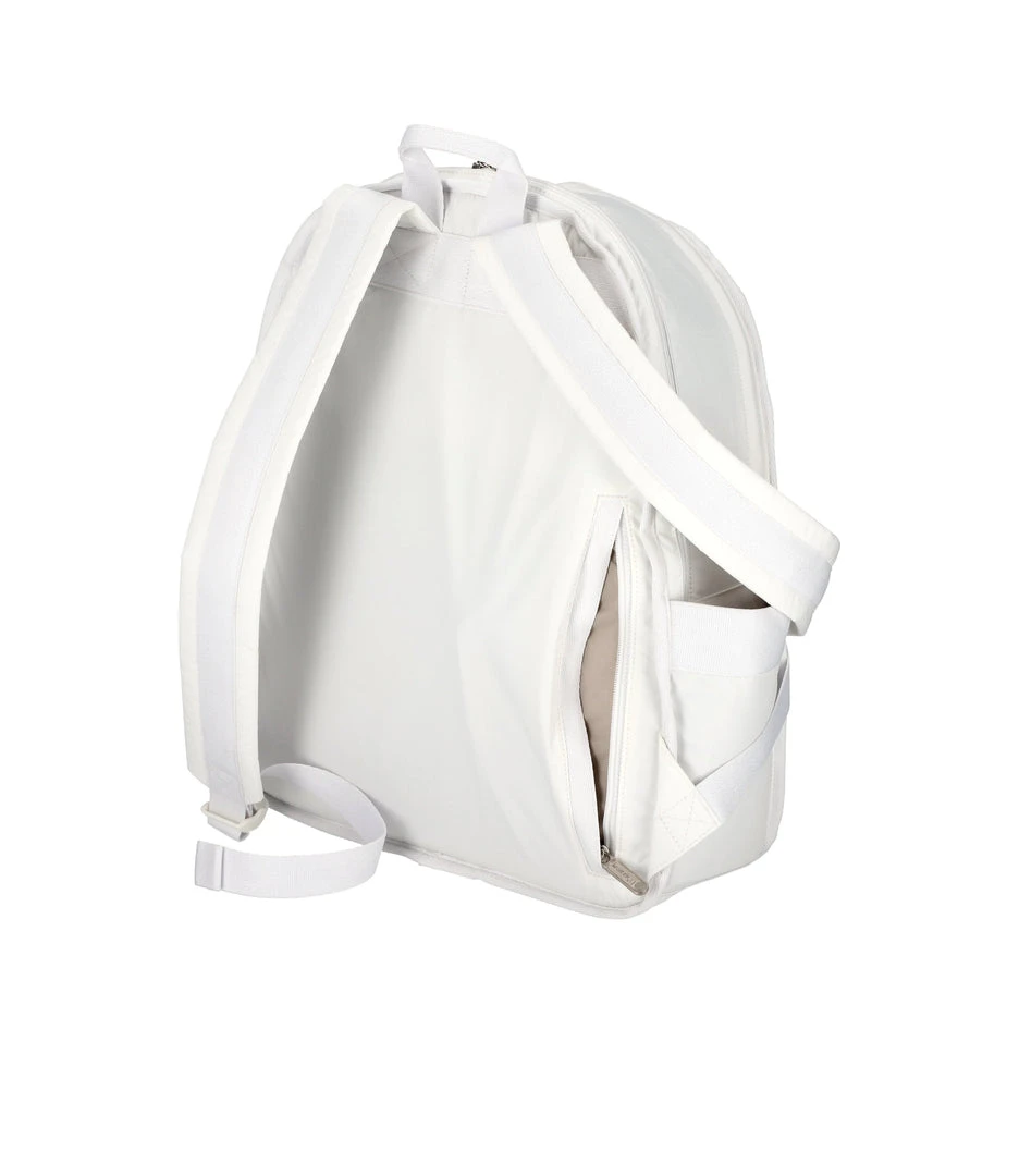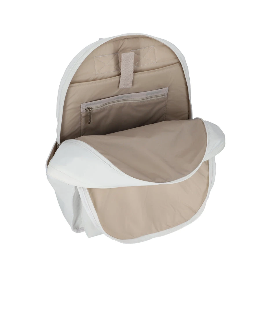 Features two zip closure compartments with dual zipper pulls, 1in/2.5cm top loop handle (Drop: 2.2in/5.5cm), Padded shoulder straps (Length: 18.5in/47cm), Exterior front zip closure pocket, Exterior back panel features a zip closure cell phone pocket on the side, Two exterior side open top pockets, Interior of front compartment features two open pockets on the interior back wall, Interior of back compartment features a laptop pocket with Velcro tab closure (for 13in laptops) and a combination zip/open pocket (on front of the laptop pocket)