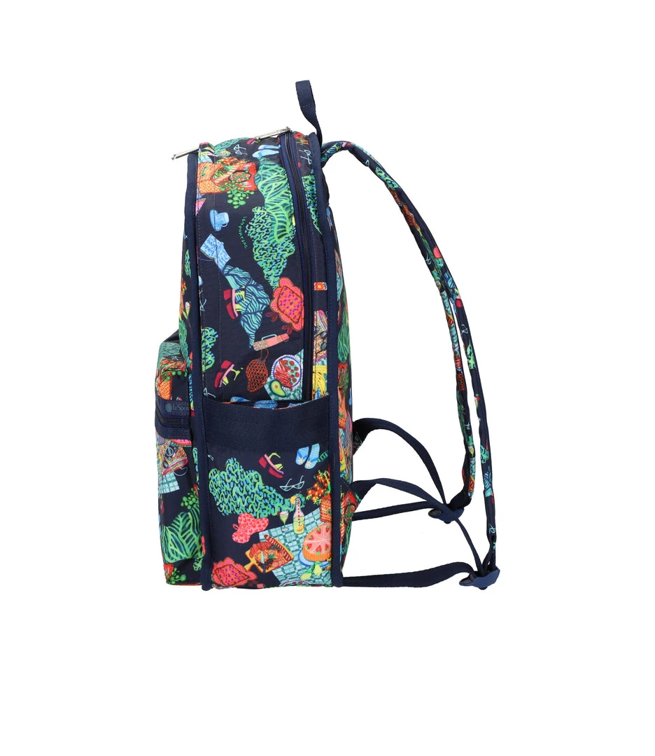 Features two zip closure compartments with dual zipper pulls, 1in/2.5cm top loop handle (Drop: 2.2in/5.5cm), Padded shoulder straps (Length: 18.5in/47cm), Exterior front zip closure pocket, Exterior back panel features a zip closure cell phone pocket on the side, Two exterior side open top pockets, Interior of front compartment features two open pockets on the interior back wall, Interior of back compartment features a laptop pocket with Velcro tab closure (for 13in laptops) and a combination zip/open pocket (on front of the laptop pocket)