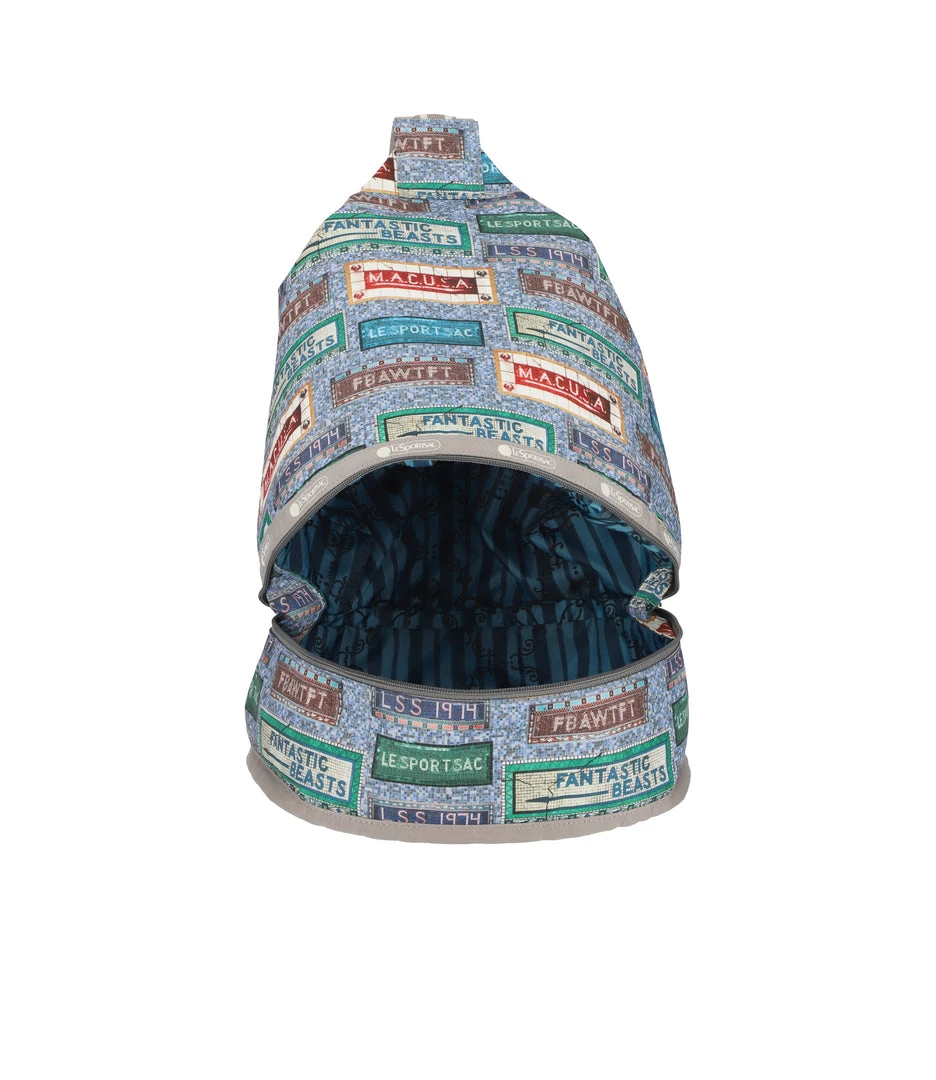 Zip main closure on back, Exterior bottom zip around compartment, Zip pocket on bottom of bag, Interior front wall open pocket, Padded adjustable shoulder strap (Max length: 34.64 in/88 cm, Min length: 25.59 in/ 65cm)