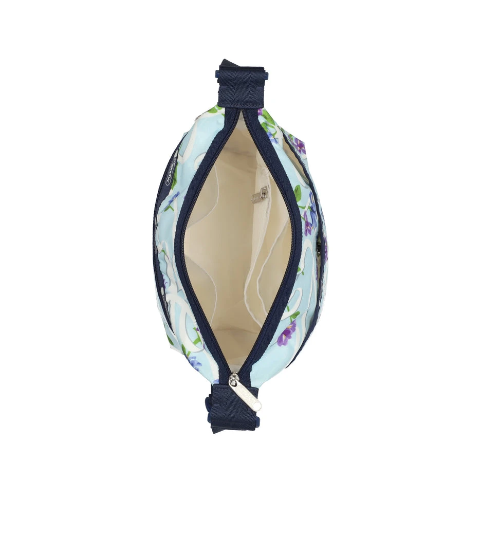 Zip main closure, Exterior front pocket with zip closure, Exterior back open pocket with magnetic snap closure, Two Interior front wall open pockets, Interior back wall features a combination zip/open pocket and a larger open pocket, 1.5 in/3.8cm wide adjustable shoulder strap (Max length: 53 in/134.5 cm, Min length: 30.3 in/ 77 cm)