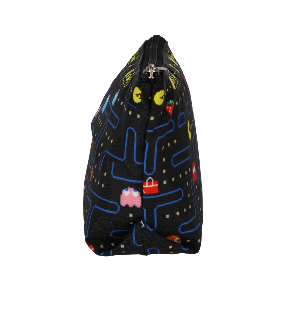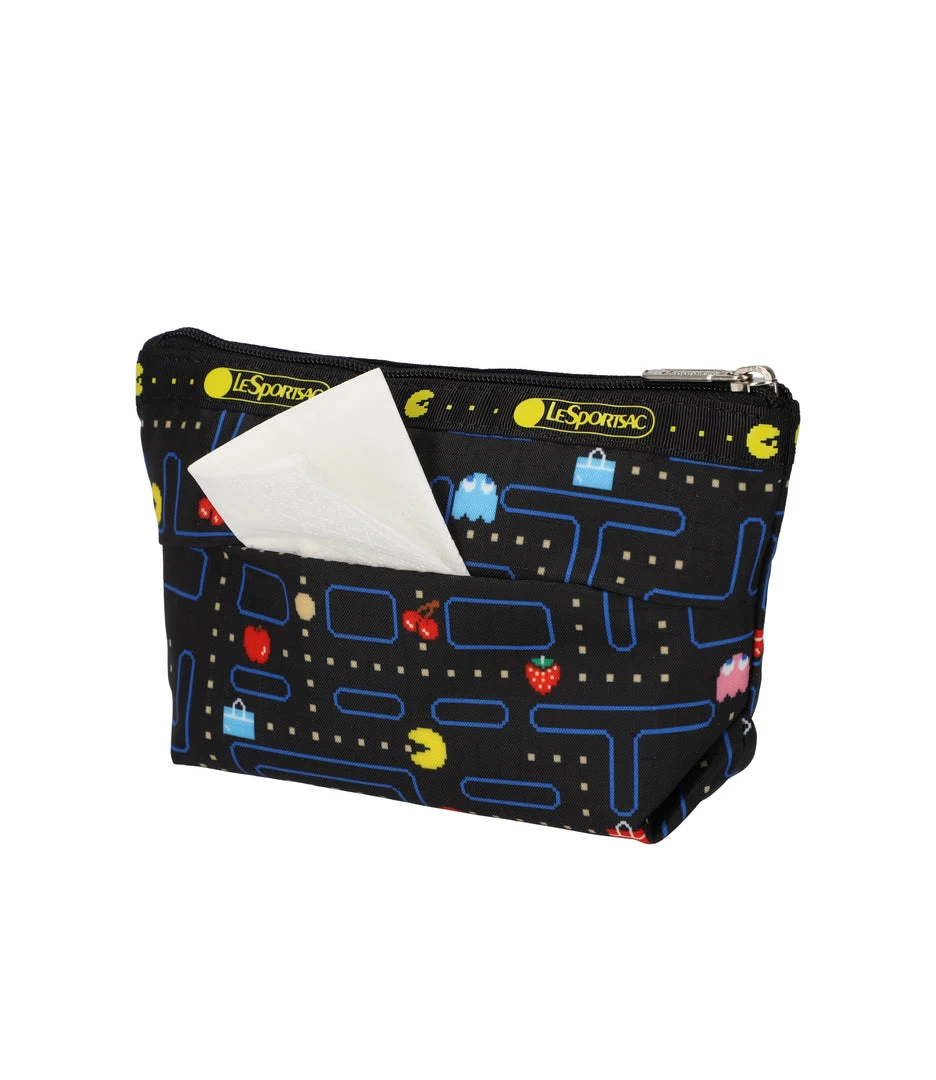 Zip top main closure, Exterior back panel tissue pocket (tissues not included)