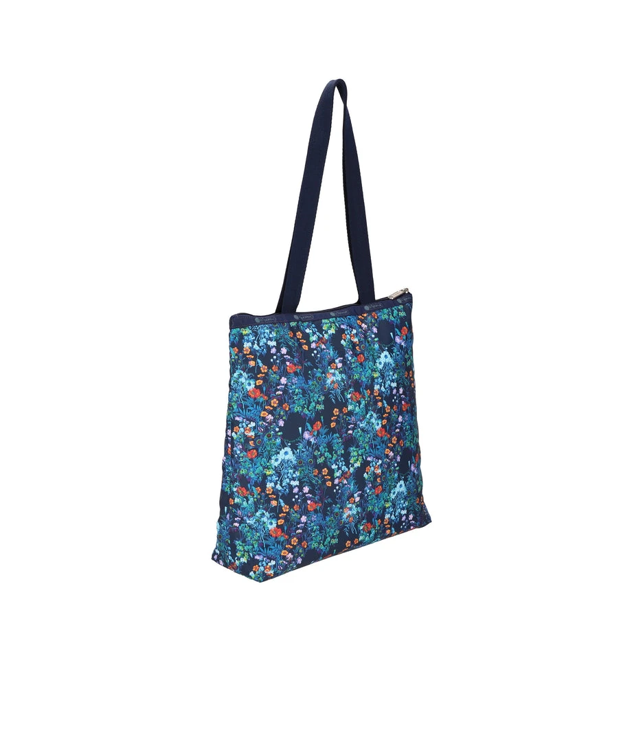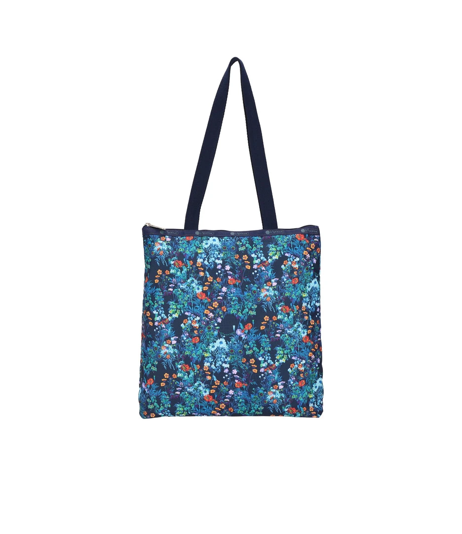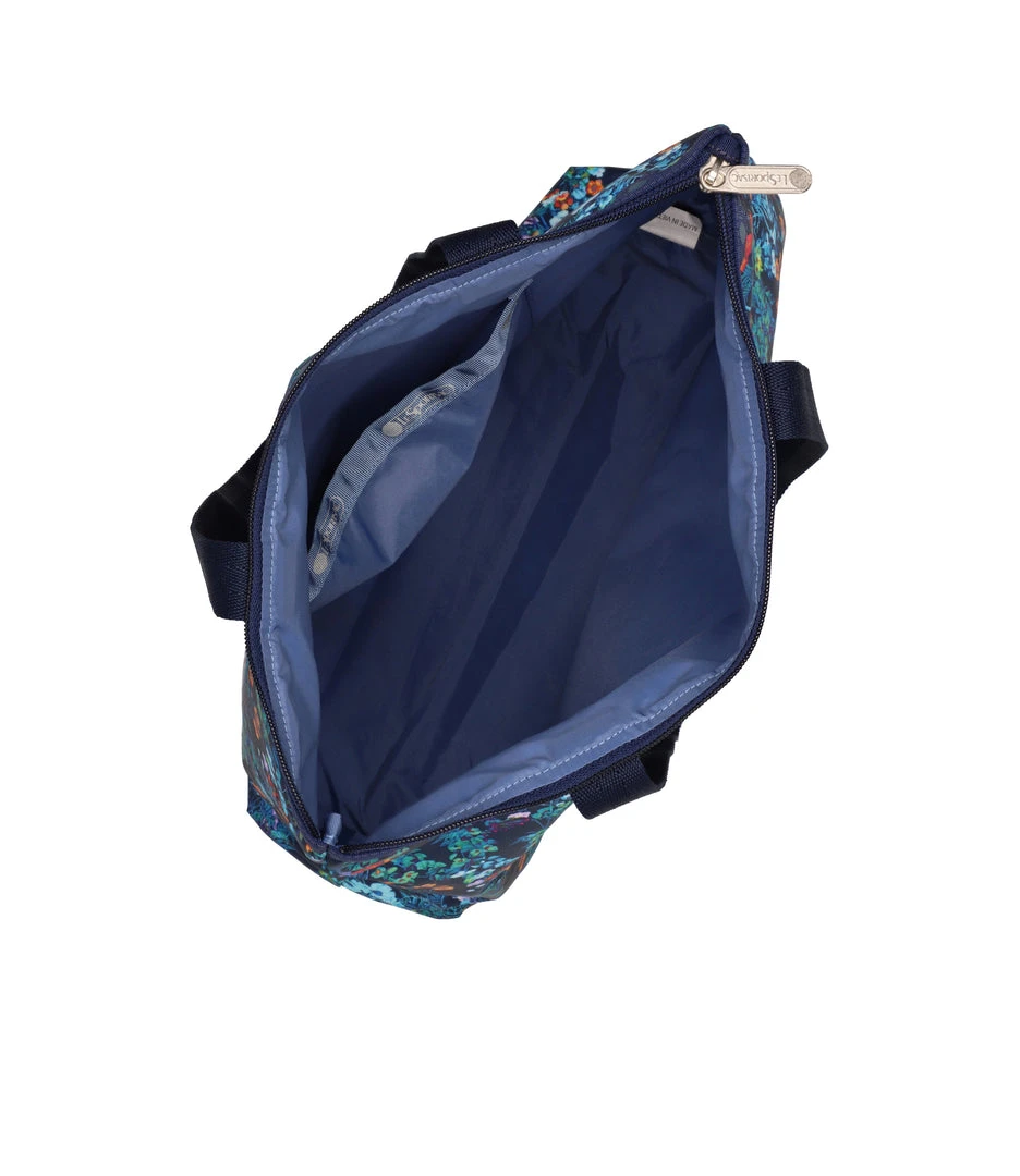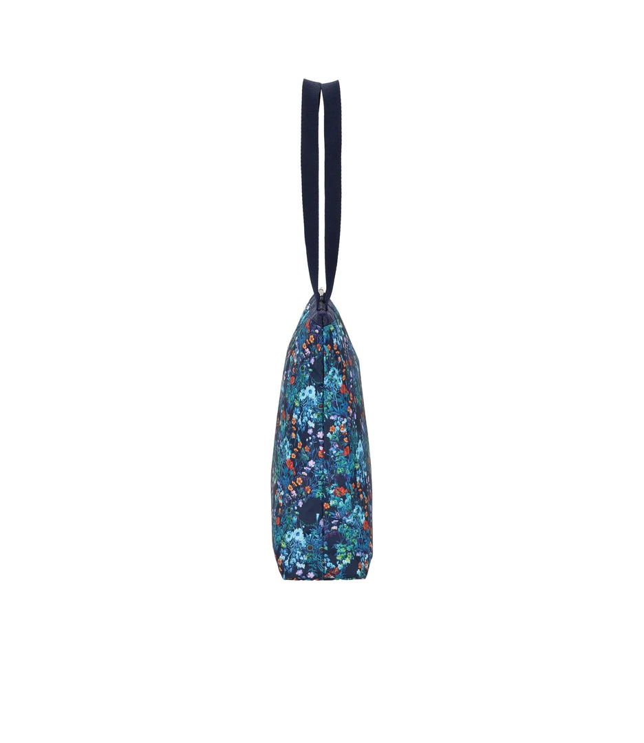 Zipped main closure, 1in (2.5cm) wide top handles (Length: 24.6 in/62.5 cm), Interior back wall combination zip/open pocket
