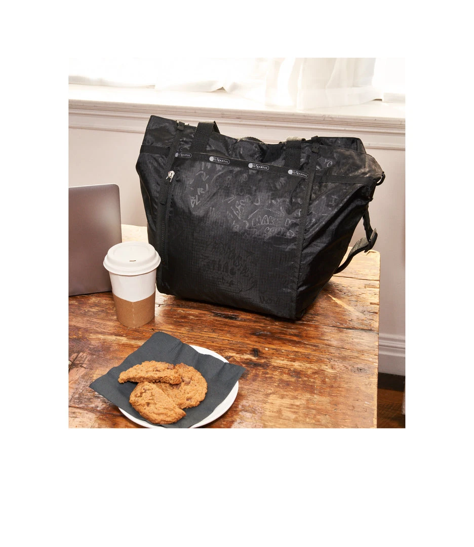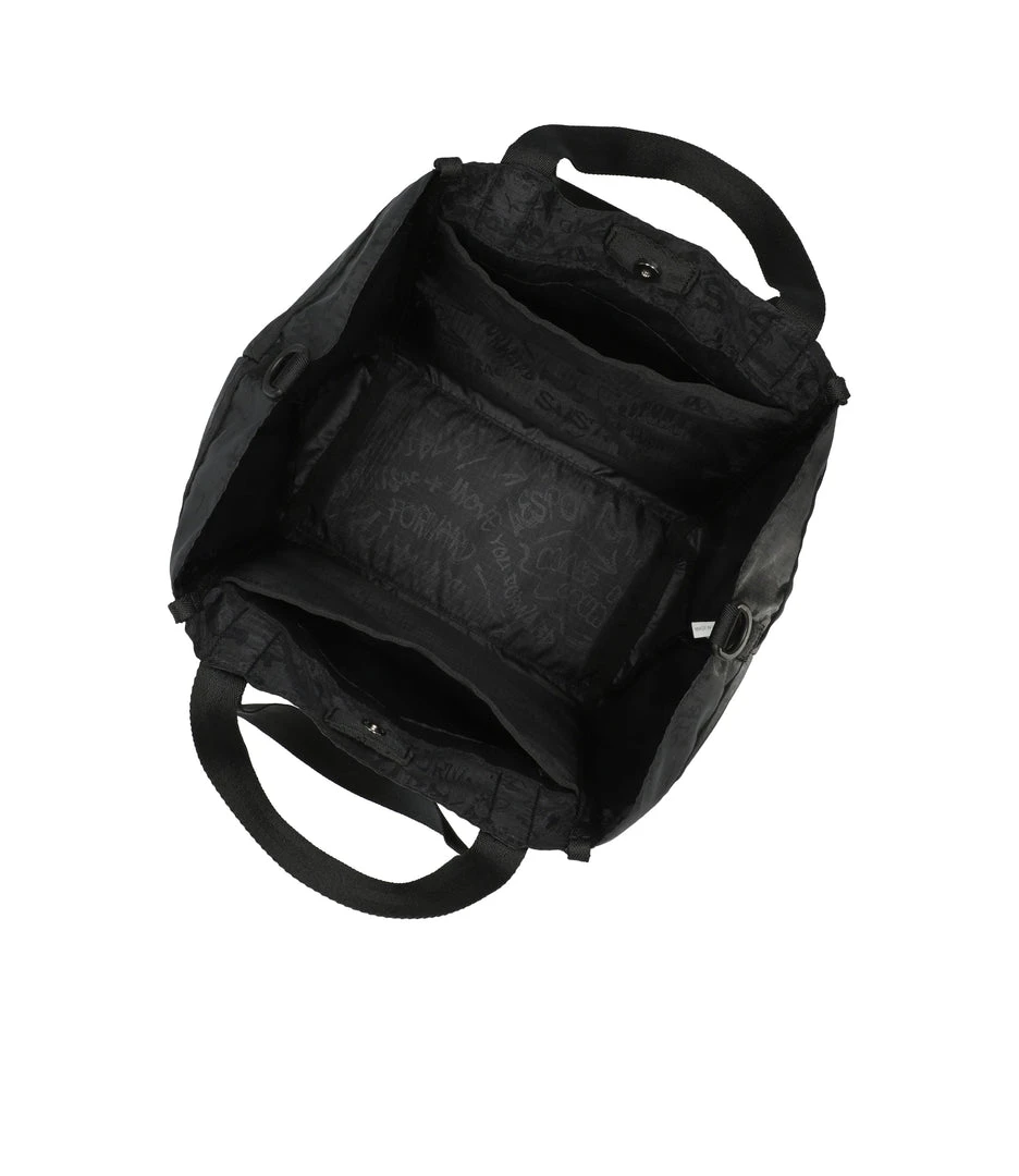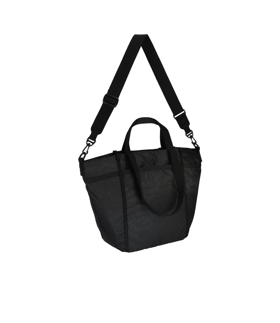 Made using 13.3 recycled plastic bottles, Magnetic snap main closure, Two sets of handles: Short handles with a 4.25in (10.8cm) drop and Long handles with a 9in (22.9cm) drop, Exterior front open pocket with magnet snap, Exterior front sideways zip pocket, Exterior back open pocket with magnetic snap, Interior front wall open pocket, Interior back wall open pocket, 1in/2.5cm wide adjustable/detachable shoulder strap (Max length: 50 in/127 cm, Min length: 28.7 in/73 cm)