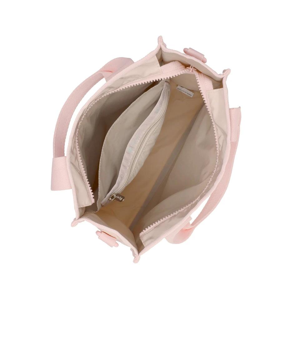 Zip main closure, Exterior front and back pockets with zipped closures, 1.5in/3.8cm wide top handles with (Drop: 5.1 in/13 cm), 1in/2.5 cm wide adjustable/detachable shoulder strap (Max length: 50 in/127 cm, Min Length: 26.4 in/67 cm), Interior combination zip/open pocket